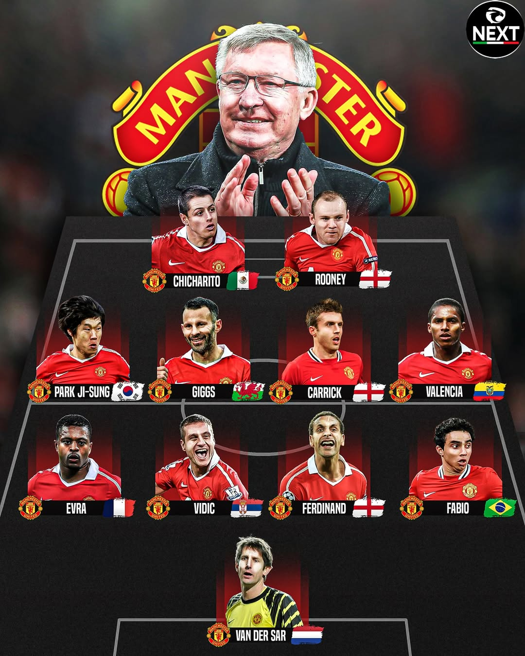 이는 지난 2010~2011시즌 맨유의 유럽축구연맹(UEFA) 챔피언스리그 결승 FC바르셀로나전 선발 라인업과 동일하다. 비록 바르셀로나에 1-3으로 져 우승에 실패했지만, 매체는 당시 라인업을 퍼거슨 감독 체제 맨유의 전성기 라인업으로 본 것이다.