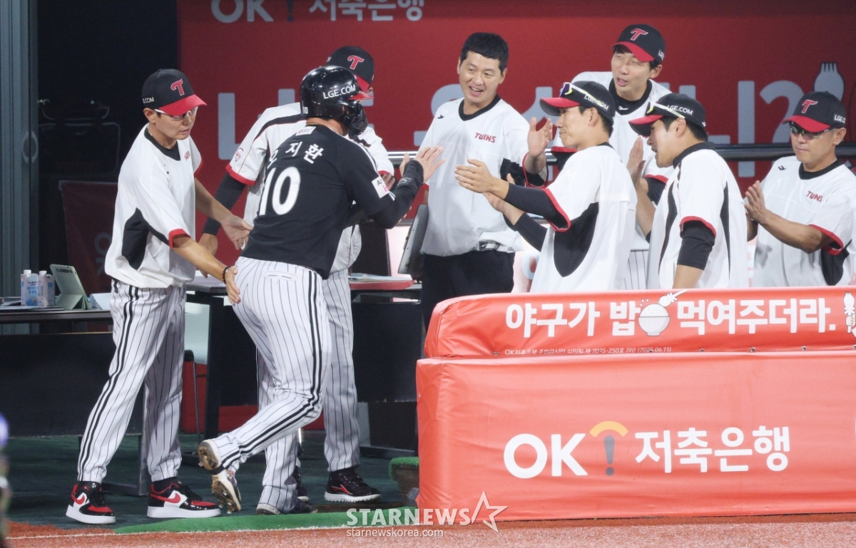 스포츠야구[포토] 오지환 '매를 벌고 싶다'발행 : 2025.09.16 ・ 19:15수원=김진경 대기자2025 신한 SOL Bank KBO리그 KT 위즈 대 LG 트윈스 경기가 16일 수원 KT위즈파크에서 열렸다.LG 2회초 2사 2루에서 2루주자 오지환이 구본혁의 적시타 때 득점한 후 염경엽 감독의 환영을 받고 있다.<저작권자 © 스타뉴스, 무단전재 및 재배포 금지>프로야구KBO헤이수스손주영미스코리아시구추천 기사김진경 대기자기자홈좋아요 스포츠-야구의 인기 급상승 뉴스스포츠-야구의 최신 뉴스
