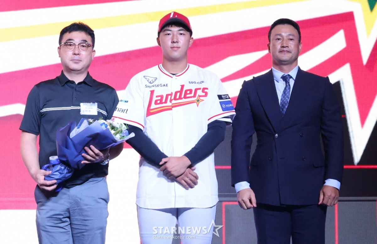 스포츠야구[포토] 대구고 김민준은 인천으로 갑니다발행 : 2025.09.17 ・ 15:17수정 : 2025.09.17 ・ 15:19잠실=김진경 대기자'2026 KBO 신인 드래프트'가 17일 서울 송파구 롯데호텔 월드 크리스탈볼룸에서 열렸다.김민준(대구고)이 전체 5순위로 SSG에 지명된 후 아버지, 김재현 단장과 기념촬영을 하고 있다<저작권자 © 스타뉴스, 무단전재 및 재배포 금지>브리핑요약 없이도 가볍게 읽으실 수 있는 짧은 뉴스입니다.추천 기사김진경 대기자기자홈좋아요스포츠-야구의 인기 급상승 뉴스스포츠-야구의 최신 뉴스