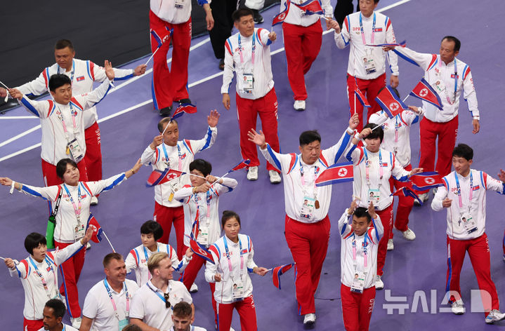 지난해 8월 프랑스 생드니 스타드 드 프랑스에서 열린 2024 파리 올림픽 폐회식에서 북한 선수단이 입장하고 있다. /사진=뉴시스