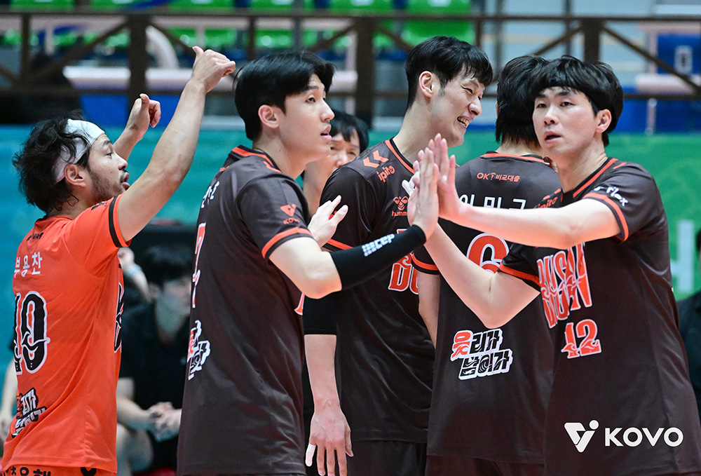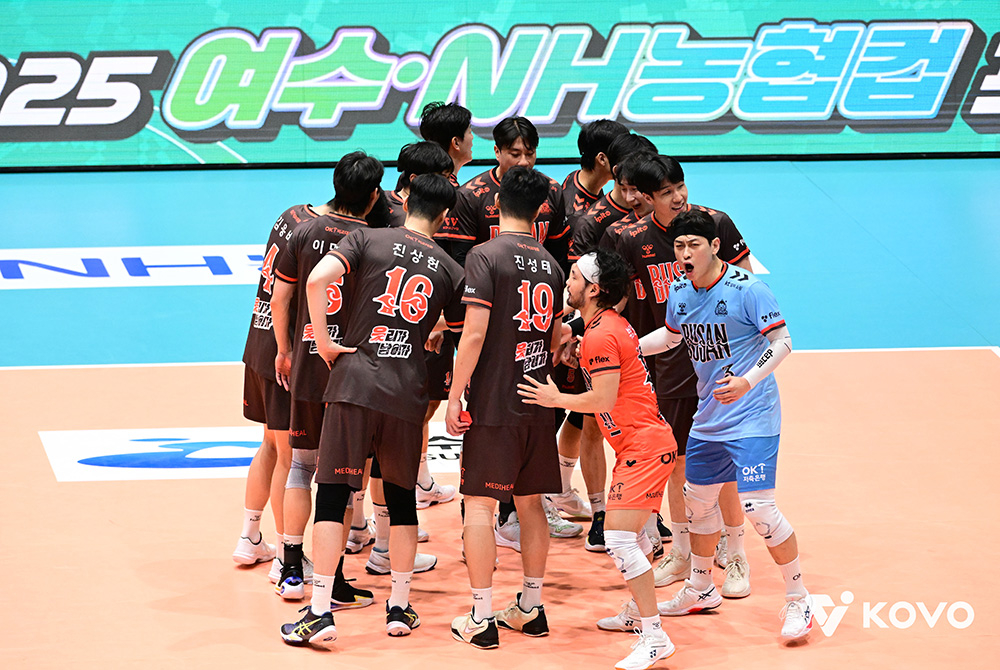 OK저축은행은 17일 전남 여수 진남체육관에서 열린 2025 여수·NH농협컵 프로배구대회 남자부 A조 최종전에서 삼성화재를 두 차례 듀스 접전 끝에 3-1(25-15, 29-27, 24-26, 25-22)로 꺾었다.
