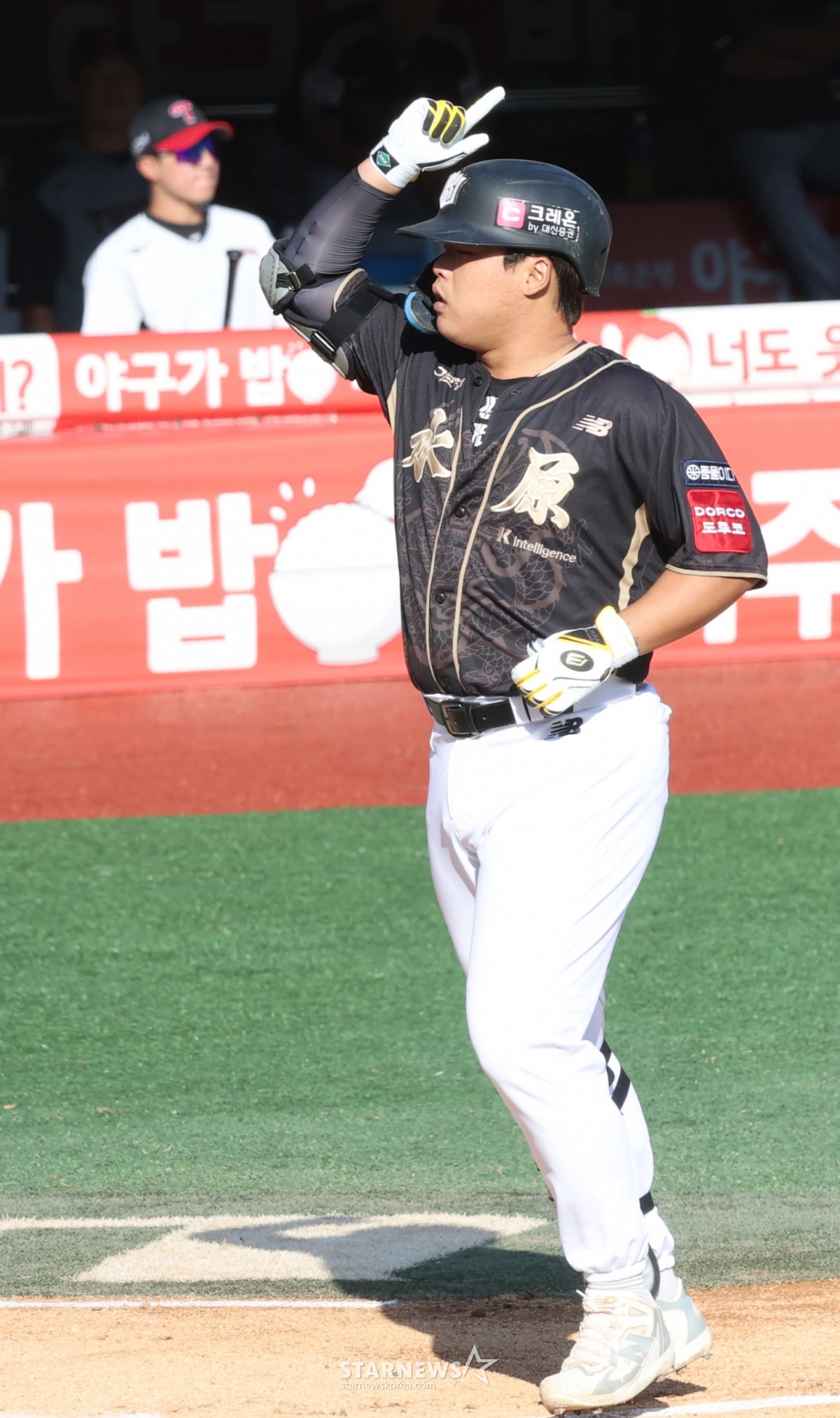 스포츠야구[포토] 강백호 '이제 1점차'발행 : 2025.09.18 ・ 16:13수원=김진경 대기자2025 신한 SOL Bank KBO리그 KT 위즈 대 LG 트윈스 경기가 18일 수원 KT위즈파크에서 더블헤더로 열렸다.KT 강백호가 DH 1차전 4회말 1사에서 LG 선발 치리노스를 상대로 우월 1점 홈런을 날리고 홈인하고 있다.<저작권자 © 스타뉴스, 무단전재 및 재배포 금지>프로야구KBO치리노스소형준구본혁오지환추천 기사김진경 대기자기자홈좋아요 스포츠-야구의 인기 급상승 뉴스스포츠-야구의 최신 뉴스