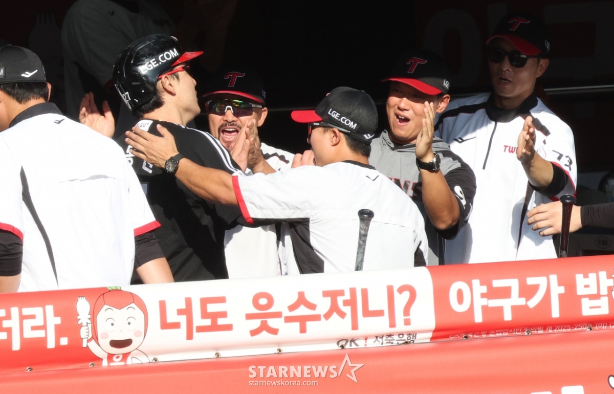 스포츠야구[포토] 박동원 '매직넘버가 떨어지는구나'발행 : 2025.09.18 ・ 16:21수원=김진경 대기자2025 신한 SOL Bank KBO리그 KT 위즈 대 LG 트윈스 경기가 18일 수원 KT위즈파크에서 더블헤더로 열렸다.DH 1차전 LG 4회초 2사 1,2루에서 2루주자 박동원이 신민재의 적시타 때 득점한 후 동료들의 환영을 받고 있다.<저작권자 © 스타뉴스, 무단전재 및 재배포 금지>프로야구KBO치리노스소형준구본혁오지환추천 기사김진경 대기자기자홈좋아요 스포츠-야구의 인기 급상승 뉴스스포츠-야구의 최신 뉴스