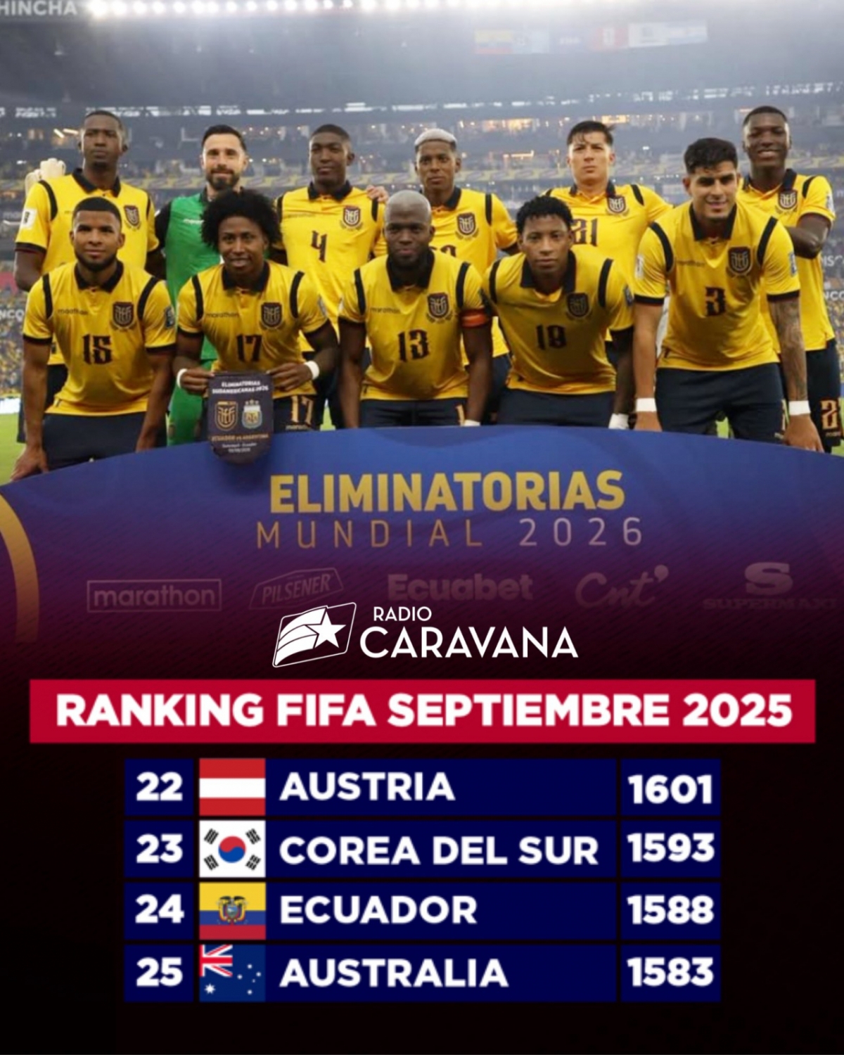 한국을 뒤쫓던 아시아 4위 호주는 9월 뉴질랜드와 평가전 2연전 승리로 4.92점을 얻었으나, 같은 기간 FIFA 랭킹 1위 아르헨티나를 꺾는 대이변을 연출한 에콰도르에 밀려 전체 순위는 25위로 한 계단 떨어졌다. 에콰도르는 아르헨티나전 승리 덕분에 9월에만 무려 17.36점을 쌓아 호주를 제치고 24위로 올라섰다. 한국과 에콰도르의 FIFA 랭킹 포인트 격차는 5.15점에 불과하다.