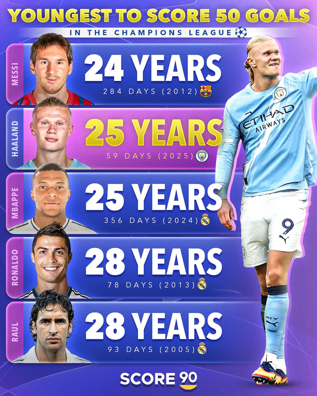 뿐만 아니라 홀란은 리오넬 메시(인터 마이애미)에 이어 역대 최연소 UCL 50골 2위에도 이름을 올렸다.