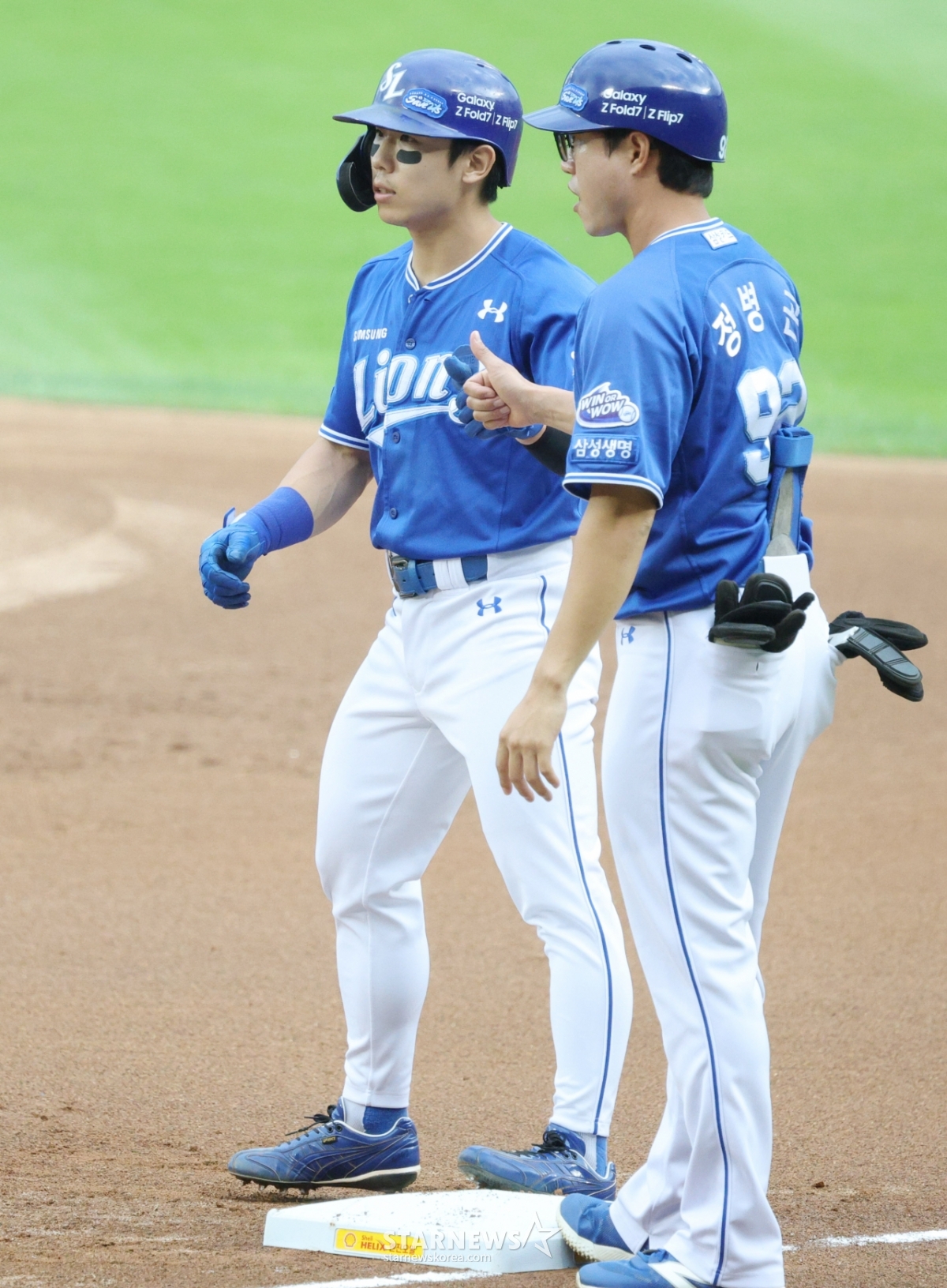 스포츠야구[포토] 김성윤 '기선제압 성공'발행 : 2025.09.20 ・ 17:13잠실=김진경 대기자2025 신한 SOL Bank KBO리그 LG 트윈스 대 삼성 라이온즈 경기가 20일 서울 잠실야구장에서 열렸다.삼성 김성윤이 1회초 무사 1루에서 우전 안타를 날리고 출루한 후 정병곤 코치의 환영을 받고 있다.<저작권자 © 스타뉴스, 무단전재 및 재배포 금지>프로야구KBO치리노스오지환오스틴시구추천 기사김진경 대기자기자홈좋아요 스포츠-야구의 인기 급상승 뉴스스포츠-야구의 최신 뉴스