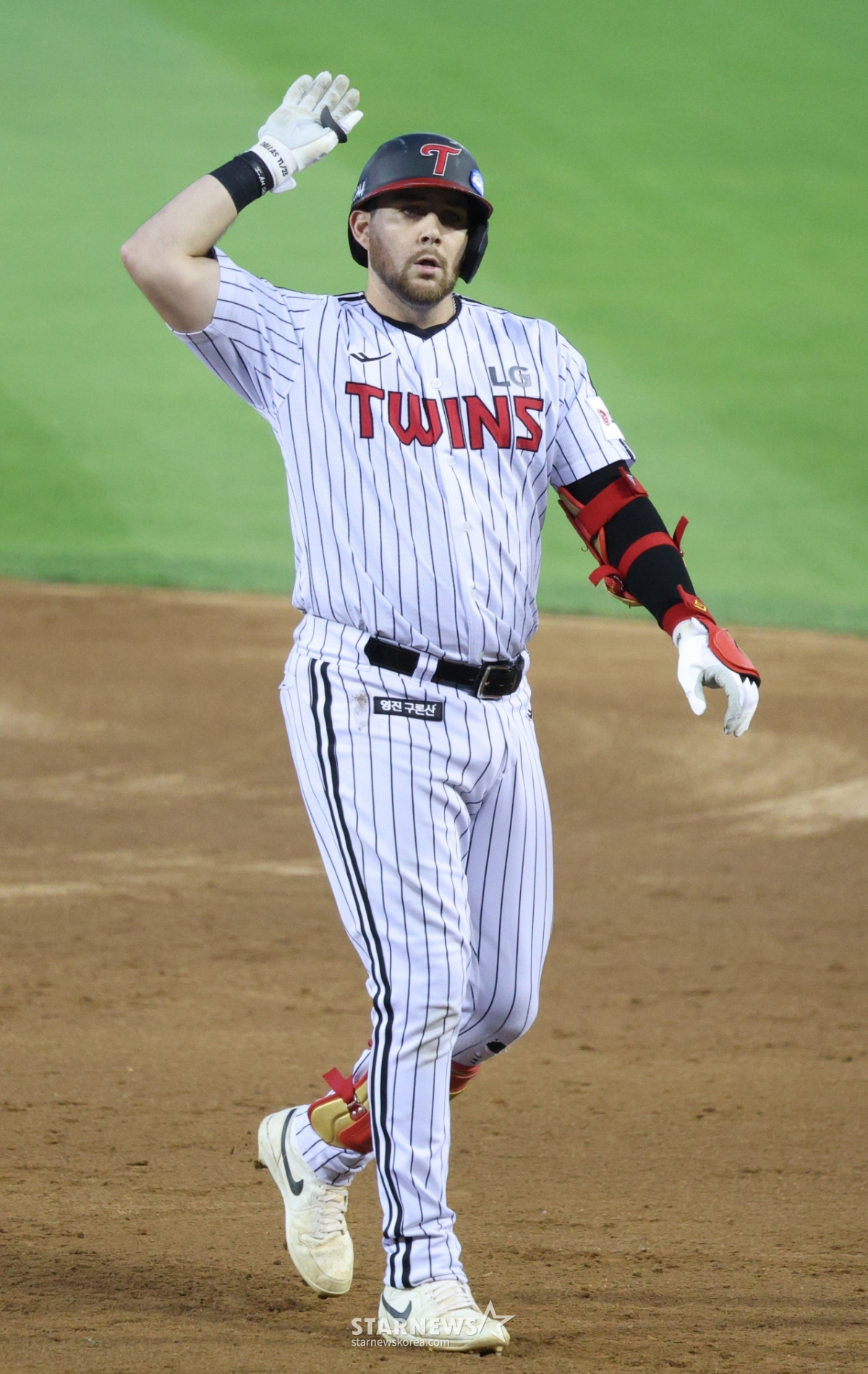 스포츠야구[포토] 오스틴 '따라붙는 적시타'발행 : 2025.09.20 ・ 18:17잠실=김진경 대기자2025 신한 SOL Bank KBO리그 LG 트윈스 대 삼성 라이온즈 경기가 20일 서울 잠실야구장에서 열렸다.LG 오스틴이 3회말 2사 1,1루에서 1타점 적시타를 날리고 출루한 후 세리머니를 하고 있다.<저작권자 © 스타뉴스, 무단전재 및 재배포 금지>프로야구KBO치리노스오지환오스틴시구추천 기사김진경 대기자기자홈좋아요 스포츠-야구의 인기 급상승 뉴스스포츠-야구의 최신 뉴스