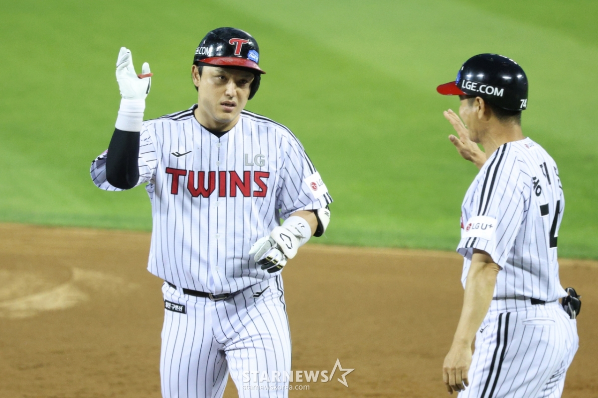 스포츠야구[포토] 박동원 '1점 따라 붙었다'발행 : 2025.09.20 ・ 18:55잠실=김진경 대기자2025 신한 SOL Bank KBO리그 LG 트윈스 대 삼성 라이온즈 경기가 20일 서울 잠실야구장에서 열렸다.LG 박동원이 4회말 2사 2루에서 1타점 적시타를 날리고 출루한 후 세리머니를 하고 있다.<저작권자 © 스타뉴스, 무단전재 및 재배포 금지>프로야구KBO치리노스오지환오스틴시구추천 기사김진경 대기자기자홈좋아요 스포츠-야구의 인기 급상승 뉴스스포츠-야구의 최신 뉴스