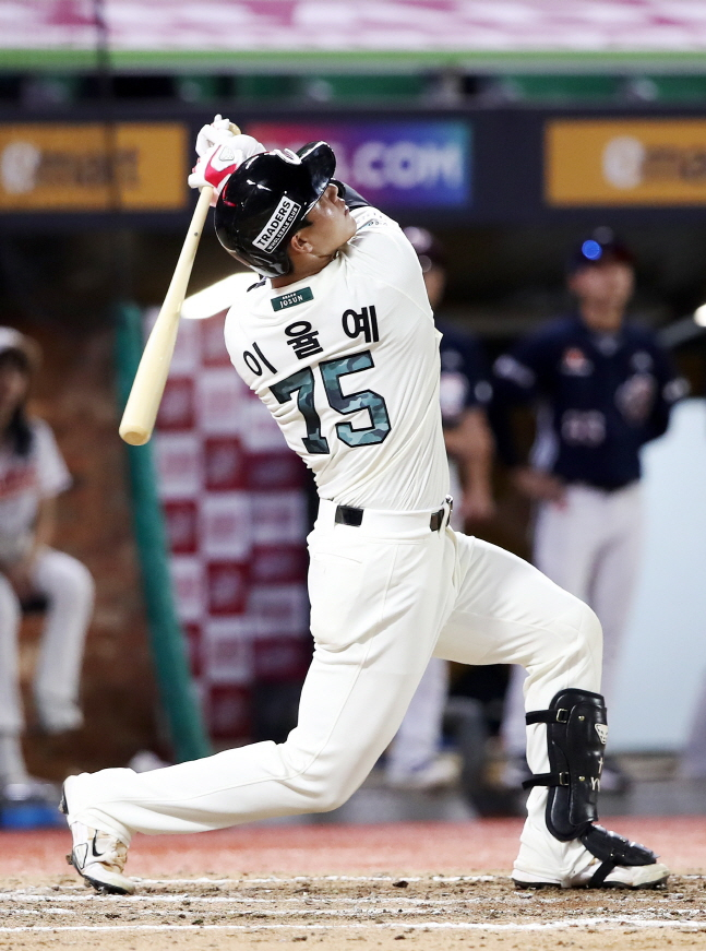 이율예(19·SSG 랜더스)는 20일 인천 SSG랜더스필드에서 열린 두산 베어스전에서 8회말 2사 1,2루에서 조형우의 대타로 출전해 김유성의 시속 147㎞ 높은 직구를 강타, 좌측 담장을 넘기는 홈런을 날렸다.
