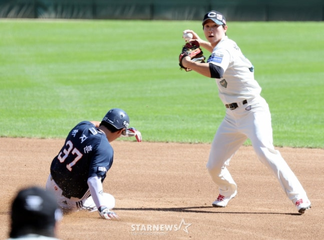 이에 맞서 두산은 안재석(유격수), 박지훈(1루수), 케이브(우익수), 김기연(포수), 강승호(지명타자), 박계범(3루수), 박준순(2루수), 김동준(좌익수), 이유찬(중견수) 순으로 선발 라인업을 짰다. 선발 투수는 최승용.
