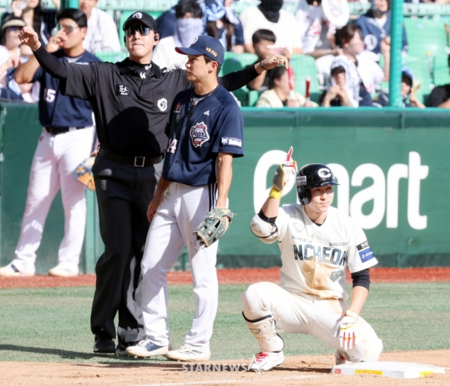 4회초 두산은 한 점을 만회했다. 선두타자 박지훈이 투수와 3루수 사이로 절묘한 기습번트를 성공시킨 뒤 후속 케이브의 좌중간 안타 때 3루에 안착했다. 이어 김기연이 유격수 앞 병살타를 쳤지만, 이 사이 3루 주자 박지훈이 여유 있게 득점했다. 다시 점수는 3-2, 한 점 차로 좁혀졌다.