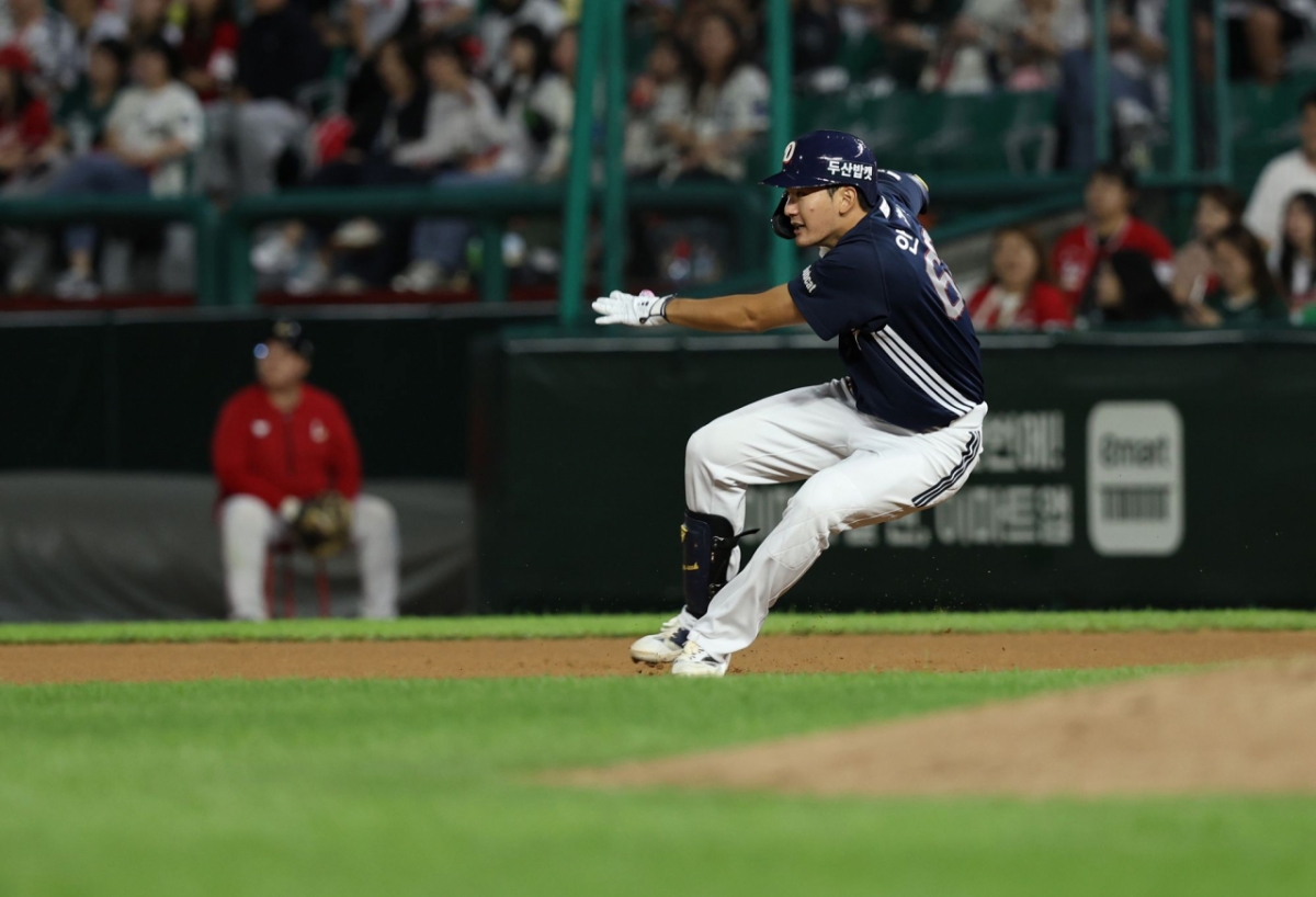 '예비역 병장' 안재석(23)이 벼락 같은 1회초 선두타자 홈런을 터트렸다.