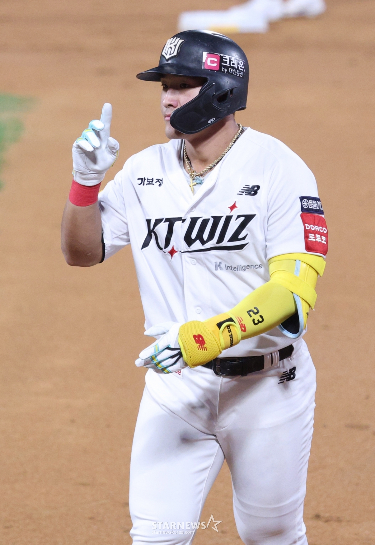 스포츠야구[포토] 안현민 '약속은 지킨다'발행 : 2025.09.23 ・ 19:12수정 : 2025.09.23 ・ 19:14수원=김진경 대기자2025 신한 SOL Bank KBO리그 KT 위즈 대 키움 히어로즈 경기가 23일 수원 KT위즈파크에서 열렸다.KT 안현민이 1회말 1사 1루에서 좌전 안타를 날리고 출루한 후 세리머니를 하고 있다.<저작권자 © 스타뉴스, 무단전재 및 재배포 금지>프로야구KBO시구승요승리요정오원석추천 기사김진경 대기자기자홈좋아요 스포츠-야구의 인기 급상승 뉴스스포츠-야구의 최신 뉴스