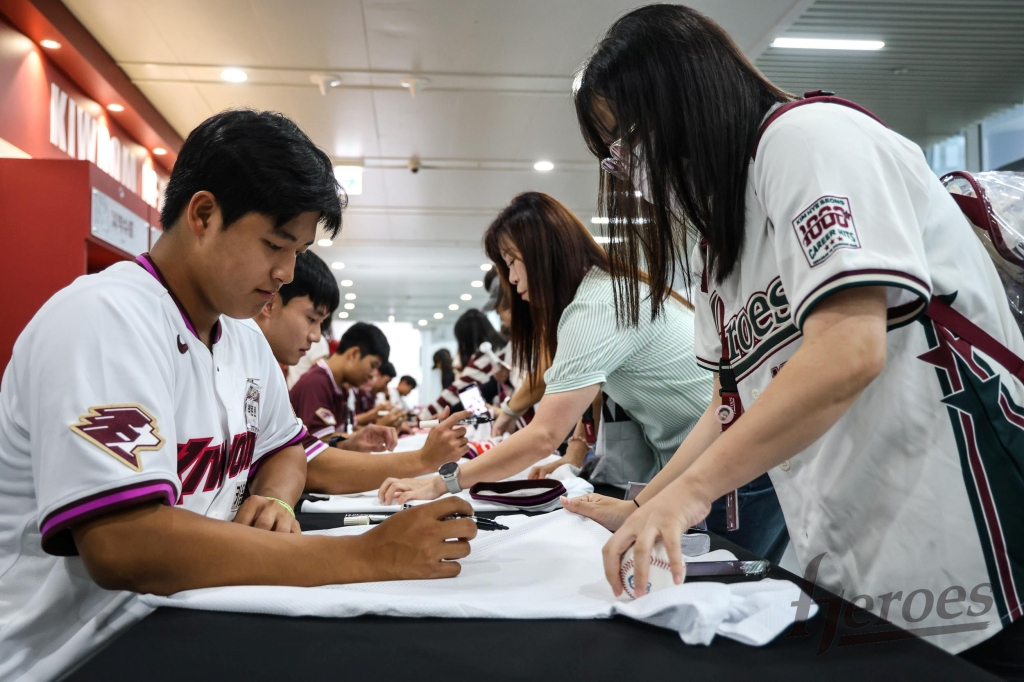 벌써 인기 폭발이다. 팬들과 직접 만나며 뜻깊은 시간도 보냈다. 사전 공모 당첨자 50명을 대상으로 신인 선수 첫 팬 사인회가 열렸다. 키움 구단에 따르면 팬 사인회 참가 경쟁률은 무려 40:1이었다고 한다. 자신을 위해 헌신한 부모님께 감사의 마음을 담아 첫 친필 사인 유니폼 및 꽃다발도 선물했다. 이어 선수단이 실제 먹는 식단으로 만찬을 즐겼으며, 5회말이 끝난 뒤에는 클리닝 타임 때 1루 응원단상에 직접 올라 팬들 앞에서 각오와 다짐을 밝혔다.