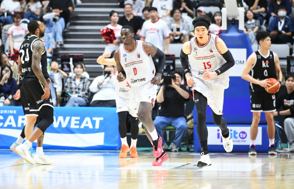 1쿼터 초반 분위기는 정관장이 잡았다. KT의 외곽포가 침묵한 가운데 정관장이 오브라이언트와 표승빈의 연속 3점으로 달아났다. 뒤이어 김종규가 골밑에서 올려놓으며 10-4로 앞서나갔다.
