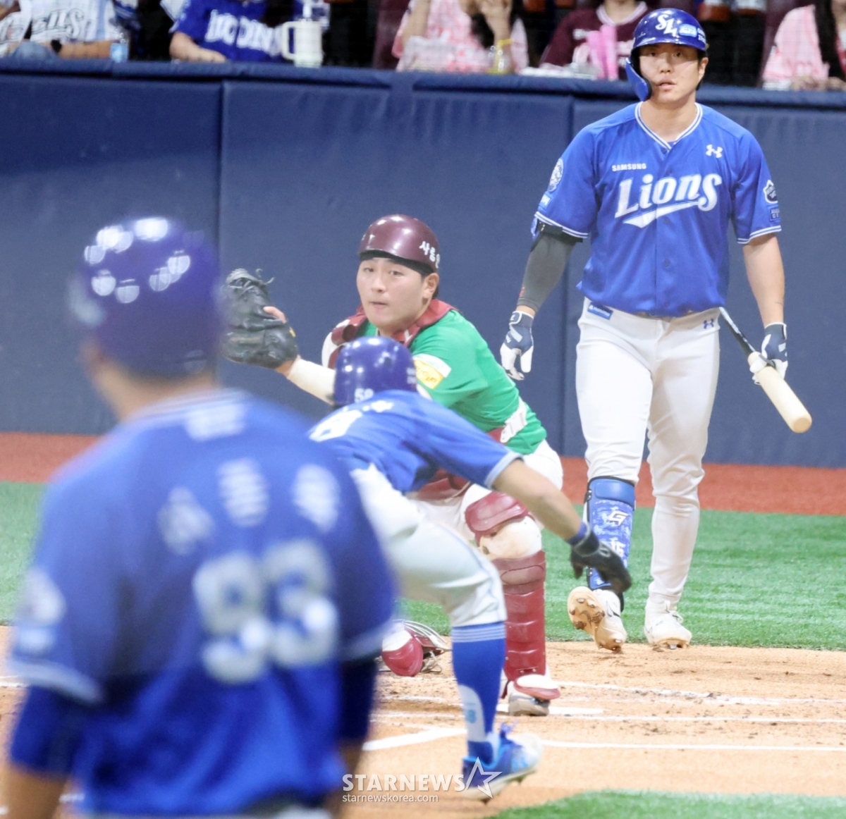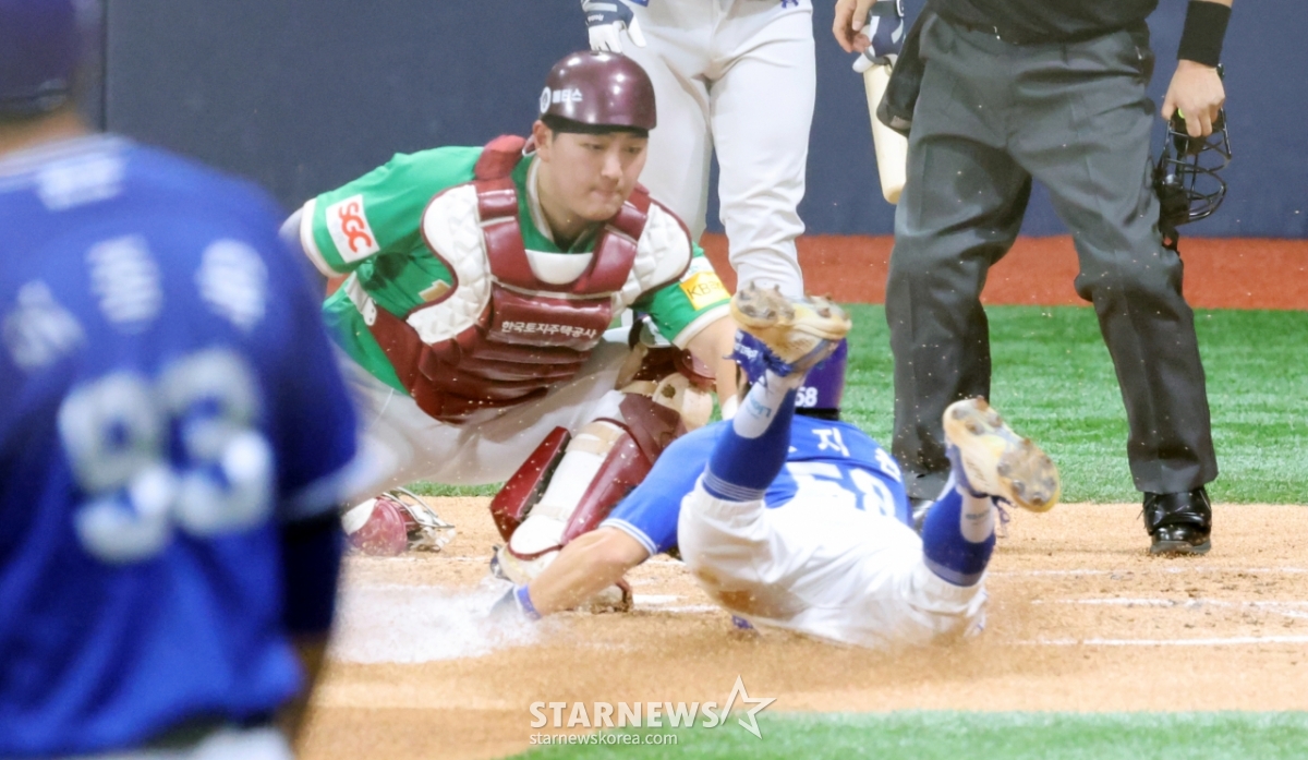 스포츠야구[한번에쓱]'나를 못 믿은겨?' 김지찬 홈스틸 아웃 목격한 류지혁발행 : 2025.09.28 ・ 15:05인천=강영조 선임기자삼성 6번타자 김지찬이 28일 고척스카이돔에서 열리는 2025KBO리그 키움히어로즈와 삼성라이온즈 경기 2회초 2사 3루 9번타자 류지혁 타석때 홈스틸을 시도했다 태그아웃 된 후 허탈한 표정으로 더그아웃으로 향하고 있다. 타석의 류지혁의 표정이 굳어있다. 2025.09.28.'뭐여?'타이밍이 아주 안좋은데여유있는 김건희'어서 오십쇼!'허걱!<저작권자 © 스타뉴스, 무단전재 및 재배포 금지>류지혁김지찬삼성스틸아웃고척추천 기사강영조 선임기자기자홈좋아요 스포츠-야구의 인기 급상승 뉴스스포츠-야구의 최신 뉴스