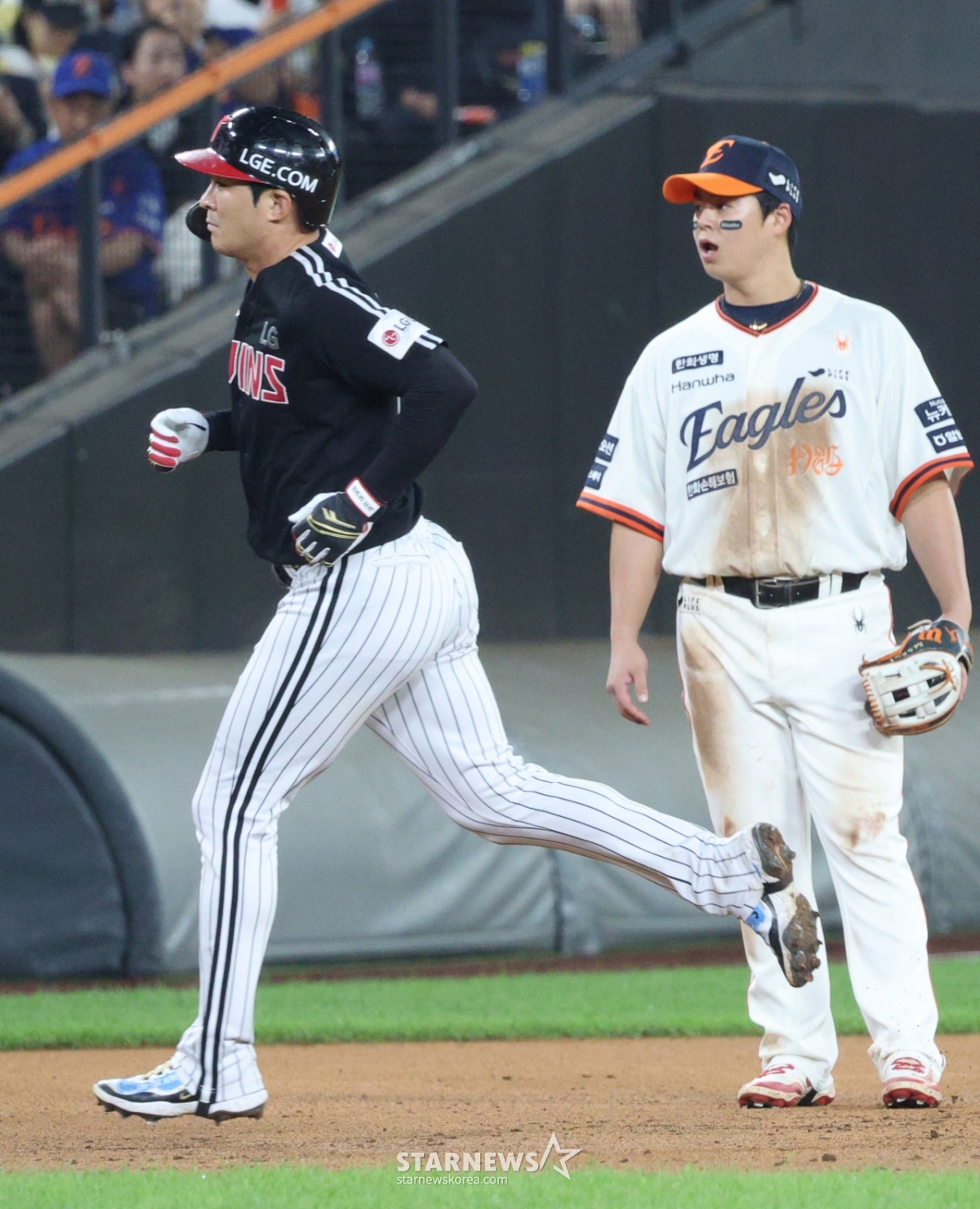 스포츠야구[포토] 오지환 '뭘 그리 놀라나 노시환'발행 : 2025.09.29 ・ 19:52대전=김진경 대기자2025 신한 SOL Bank KBO리그 한화 이글스 대 LG 트윈스 경기가 29일 대전한화생명 볼파크에서 열렸다.LG 오지환이 5회초 1사에서 우월 1점 홈런을 날리고 홈인하고 있다.<저작권자 © 스타뉴스, 무단전재 및 재배포 금지>브리핑요약 없이도 가볍게 읽으실 수 있는 짧은 뉴스입니다.추천 기사김진경 대기자기자홈좋아요스포츠-야구의 인기 급상승 뉴스스포츠-야구의 최신 뉴스