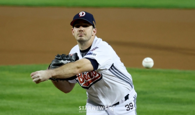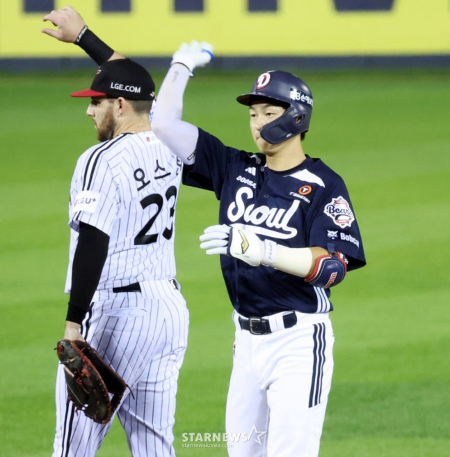 두산은 9회초에도 점수를 내며 쐐기를 박았다. 1사에서 정수빈이 우중간 2루타를 쳤다. 안재석이 볼넷, 박지훈이 좌전 1타점 적시타, 케이브가 우중간 2타점 적시 2루타로 대미를 장식했다.