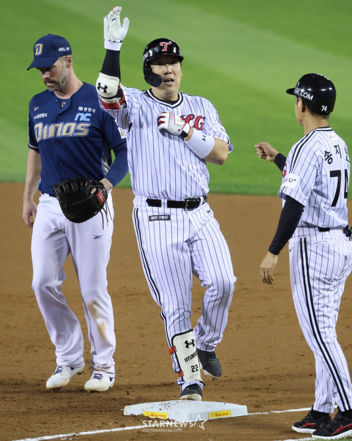 스포츠야구[포토] 김현수 '선제타 빠샤!'발행 : 2025.10.01 ・ 18:51잠실=김진경 대기자광고삭제2025 신한 SOL Bank KBO리그 LG 트윈스 대 NC 다이노스 경기가 1일 서울 잠실야구장에서 열렸다.LG 김현수가 1회말 2사 2루에서 선제 1타점 적시타를 날리고 출루한 후 세리머니를 하고 있다.<저작권자 © 스타뉴스, 무단전재 및 재배포 금지>프로야구KBOLG_트윈스우승1위염갈량추천 기사김진경 대기자기자홈좋아요 스포츠-야구의 인기 급상승 뉴스스포츠-야구의 최신 뉴스