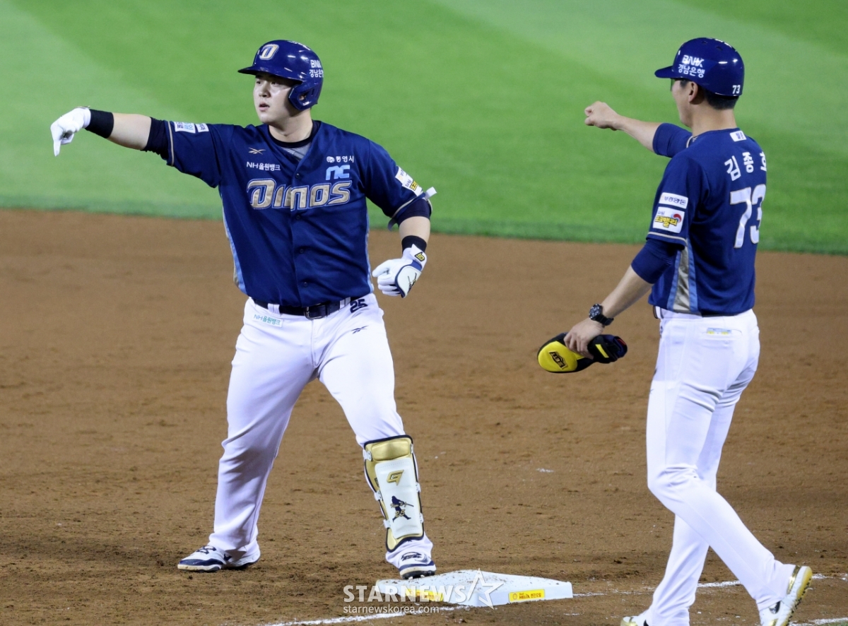 스포츠야구[포토] 김형준 '8연승은 이렇게 시작됐다'발행 : 2025.10.01 ・ 19:51수정 : 2025.10.01 ・ 19:56잠실=김진경 대기자광고삭제2025 신한 SOL Bank KBO리그 LG 트윈스 대 NC 다이노스 경기가 1일 서울 잠실야구장에서 열렸다.NC 김형준이 4회초 1사 만루에서 역전 2타점 적시타를 날리고 출루한 후 세리머니를 하고 있다.<저작권자 © 스타뉴스, 무단전재 및 재배포 금지>프로야구KBOLG_트윈스우승1위염갈량추천 기사김진경 대기자기자홈좋아요 스포츠-야구의 인기 급상승 뉴스스포츠-야구의 최신 뉴스