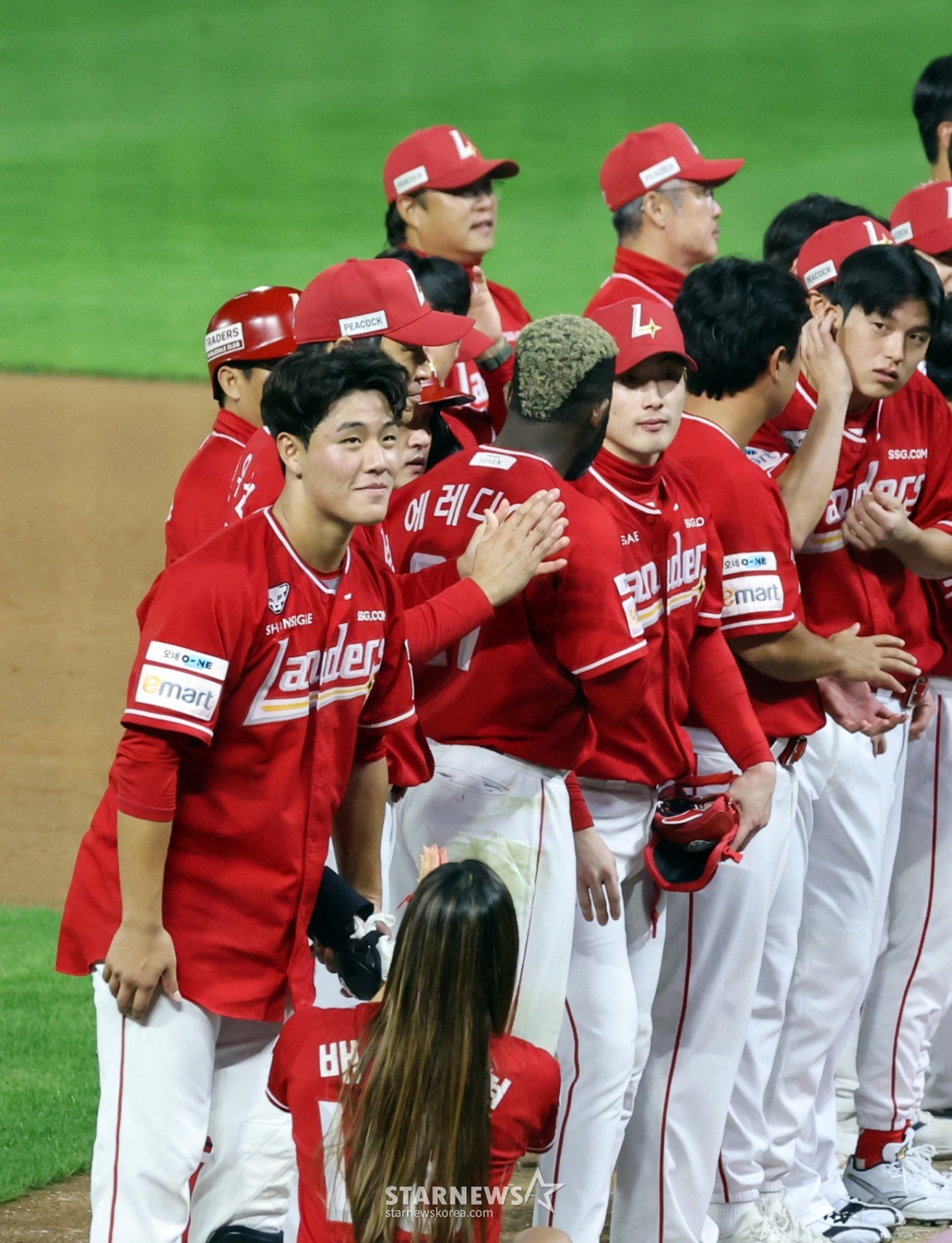 스포츠야구[한번에쓱]'이정도면 한국시리즈 끝내기 세리머니지' 9회말 역전끝내기 투런홈런 이율예발행 : 2025.10.01 ・ 23:23인천=강영조 선임기자광고삭제SSG 9번타자 이율예가 1일 랜더스필드에서 열린 2025KBO리그 한화이글스와 SSG랜더스 경기 9회말 2사 1루에서 한화 마무리 김서현을 상대로 끝내기 투런홈런을 터트린 후 환호하고 있다. LG트윈스는 이율예의 홈런으로 남은 한화경기에 상관없이 리그1위를 확정지었다. 2025.10.01<저작권자 © 스타뉴스, 무단전재 및 재배포 금지>한국내기니지랜더스홈런이율추천 기사강영조 선임기자기자홈좋아요 스포츠-야구의 인기 급상승 뉴스스포츠-야구의 최신 뉴스
