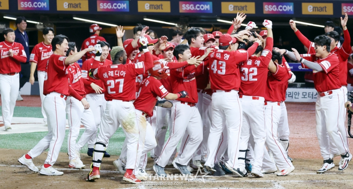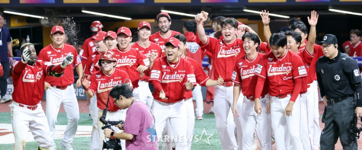 누구보다 캡틴 김광현의 환호성이 제일 크다.