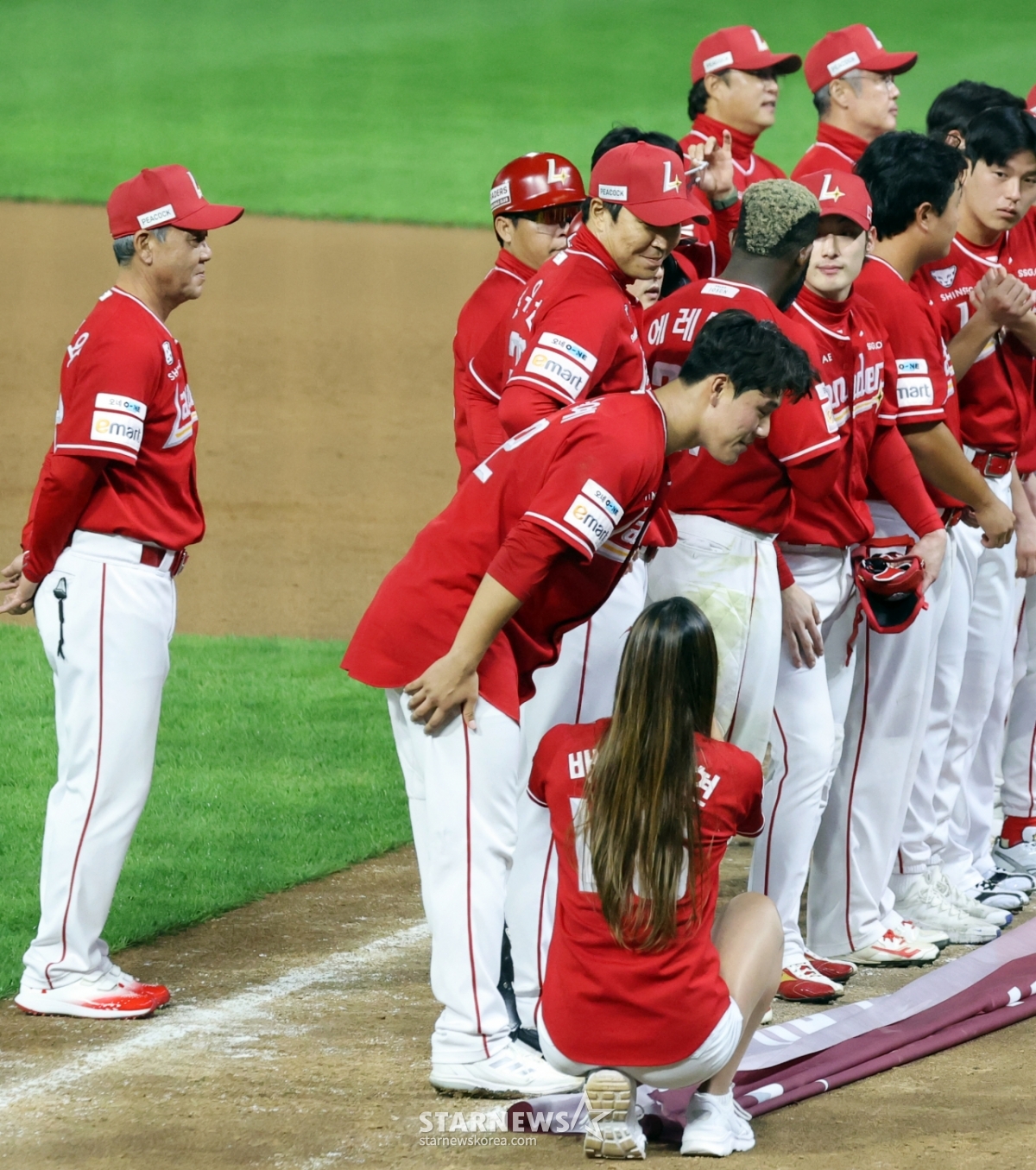 이숭용 감독도 그라운드로 나와 이예율을 힘껏 껴안아준다.