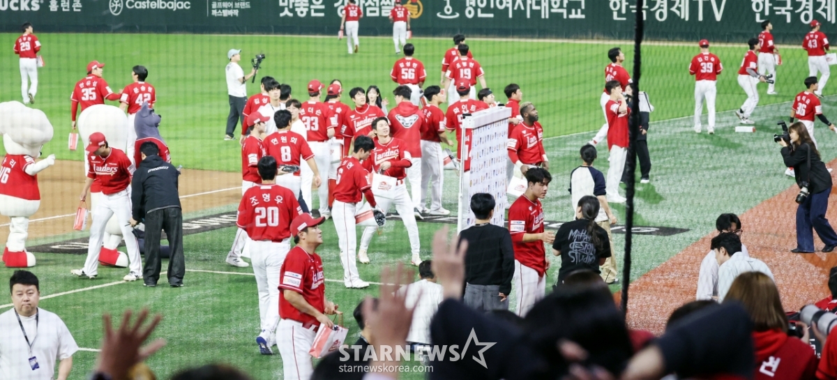 선수들은 관중석을 가득 채우며 142번째 랜더스경기(홈 마지막 경기)를 응원한 팬들에게 사인볼을 던져주고 있다. 무엇보다 9회말 2사후에 보여준 대역전 블록버스터는 선수들이나 팬들이나 웬만해서 잊혀지지않을 추억이 될 듯하다.