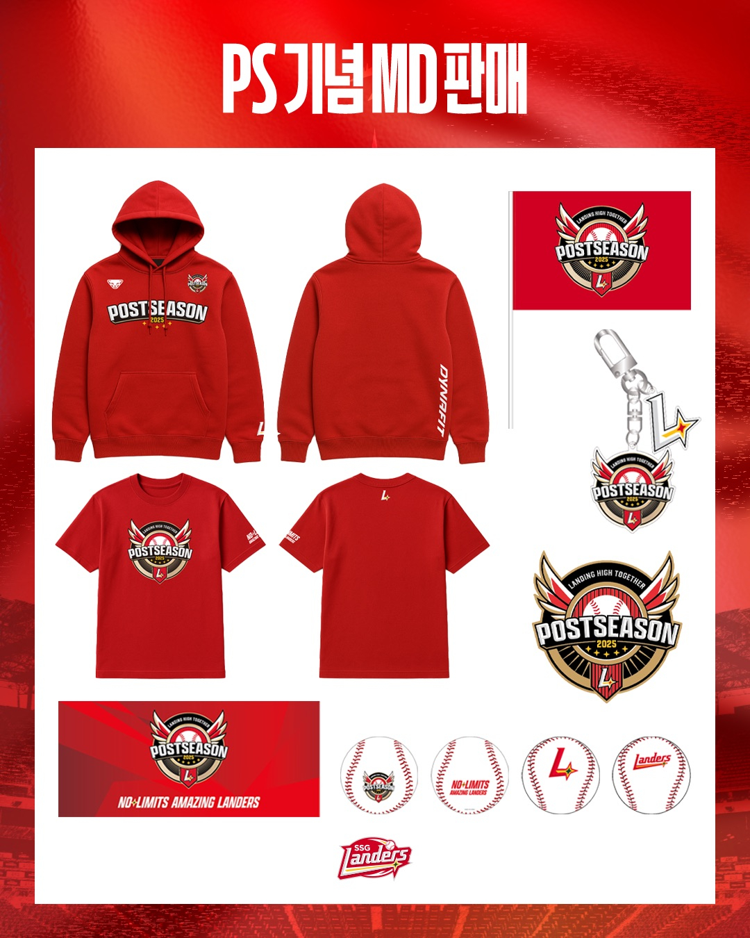 이와 함께 SSG는 'Red Wave' 콘셉트를 반영한 포스트시즌 기념 MD 시리즈를 선보인다. 상품 구성은 ▲후드 ▲반팔티 ▲아크릴키링 ▲자수 와펜 ▲응원타월 ▲기념구 등이며, 오프라인 '랜더스샵 by Hyungji'에서 10월 9일 개문과 동시에 판매된다. 단 추석 연휴로 인해 온라인 판매는 진행되지 않는다.