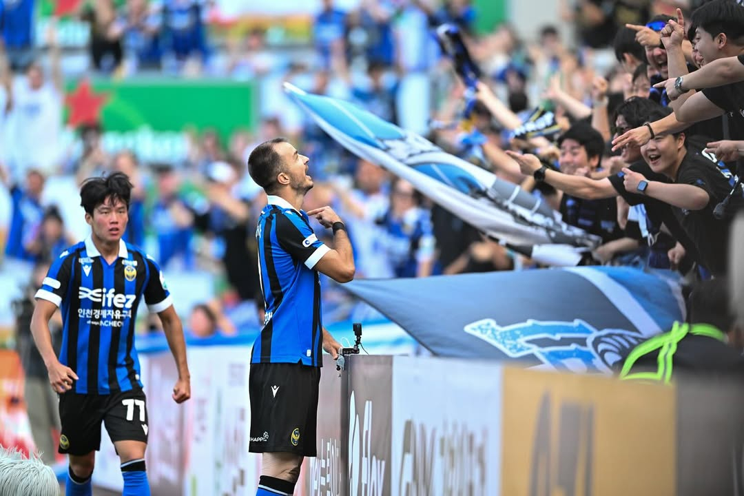 공교롭게도 이날 경기를 앞두고 구단주이기도 한 유정복 인천시장으로부터 '인천 명예시민증'을 받은 날이어서 그 의미는 더했다. 지난 2018년 입단으로 처음 인천과 연을 맺은 무고사는 2022년 비셀 고베(일본)로 이적했다가, 1년 만에 다시 친정팀으로 돌아온 공격수다. 승격 전쟁을 위해 대표팀 소집마저 거절한 일화가 보여주듯 인천 구단과 팬들에 대한 애정이 큰 선수로도 꼽힌다. 그리고 실제 이날 중요한 경기에서 한 방까지 터뜨렸으니, 팬들의 감동은 더욱 클 수밖에 없다.