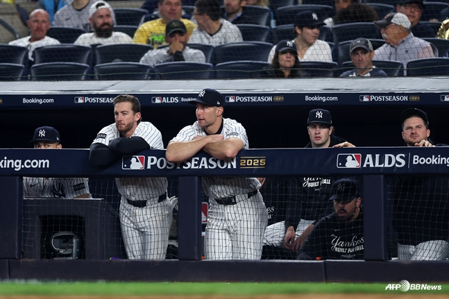 양키스는 9일(한국시간) 미국 뉴욕주 브롱스에 위치한 양키 스타디움에서 열린 토론토와 2025 메이저리그 포스트시즌 아메리칸리그 디비전시리즈 4차전서 2-5로 졌다. 1-2로 뒤진 상황에서 추가 2실점하며 경기를 내주고 말았다.