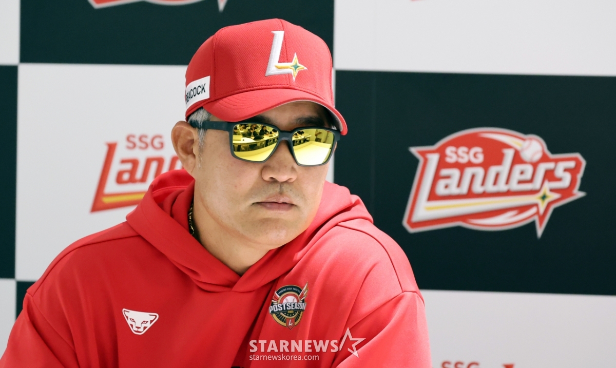 SSG 이숭용 감독이 9일 랜더스필드에서 열린 2025KBO리그 준플레이오프 SSG랜더스와 삼성라이온즈 경기에 앞서 기자회견에 참석해 가을야구에 임하는 결의를 밝히고 있다. 2025.10.09