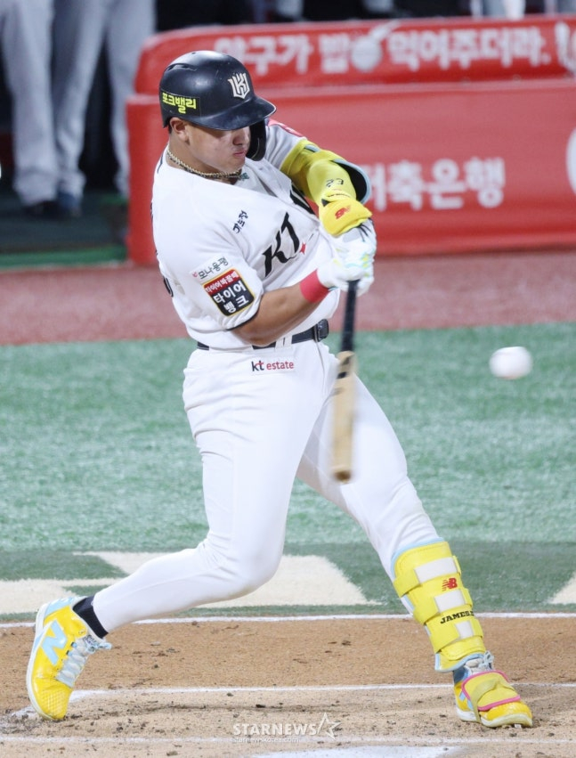 안현민은 정규시즌 112경기 타율 0.334(395타수 132안타) 22홈런 80타점 72득점 7도루, 출루율 0.448 장타율 0.570 OPS(출루율+장타율) 1.018을 기록했다. 세부 지표도 뛰어나서 한국 야구 통계 사이트 기준 wRC+(조정 득점 생산력)도 무려 182.7을 기록했다. wRC+는 리그 평균을 100으로 했을 때 160 이상이면 리그 정상급이다.