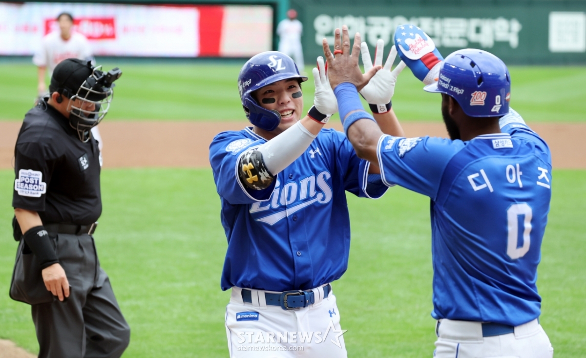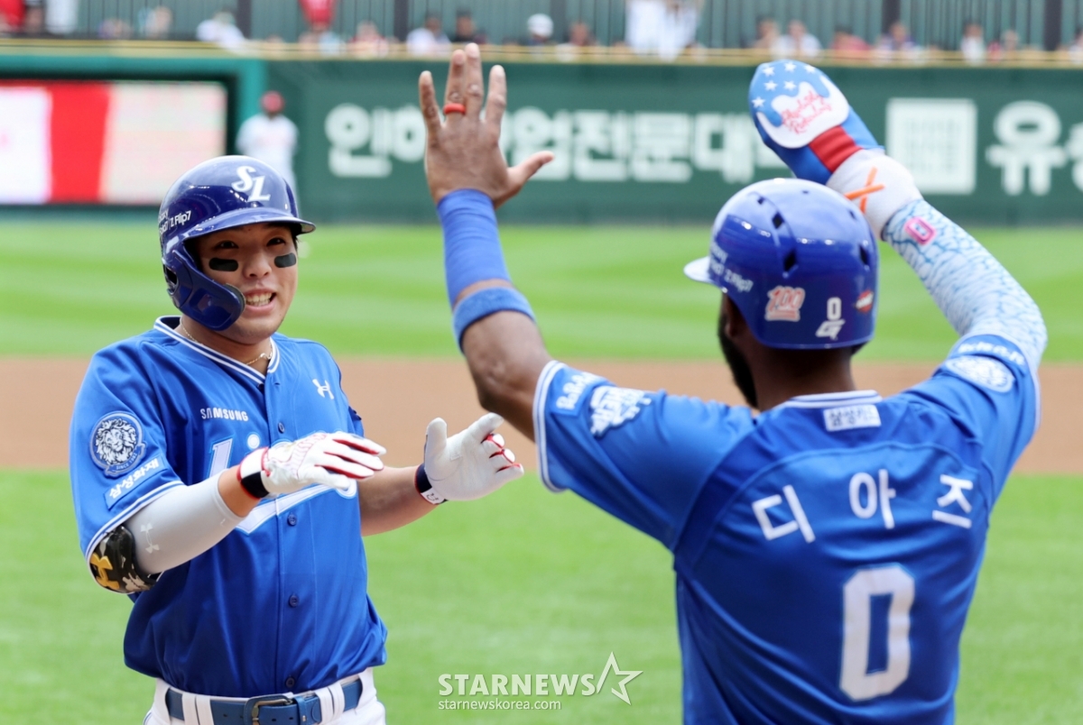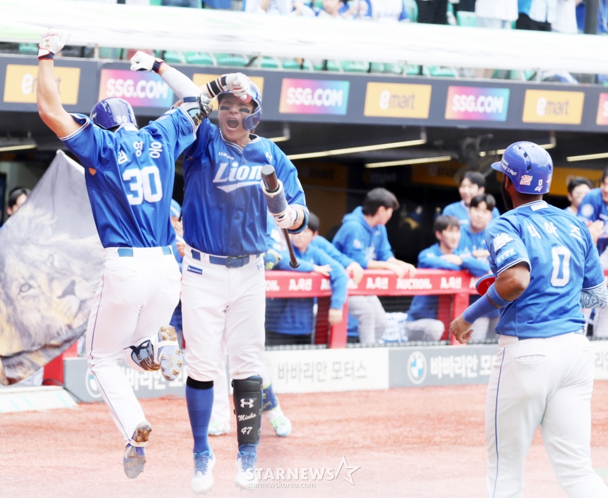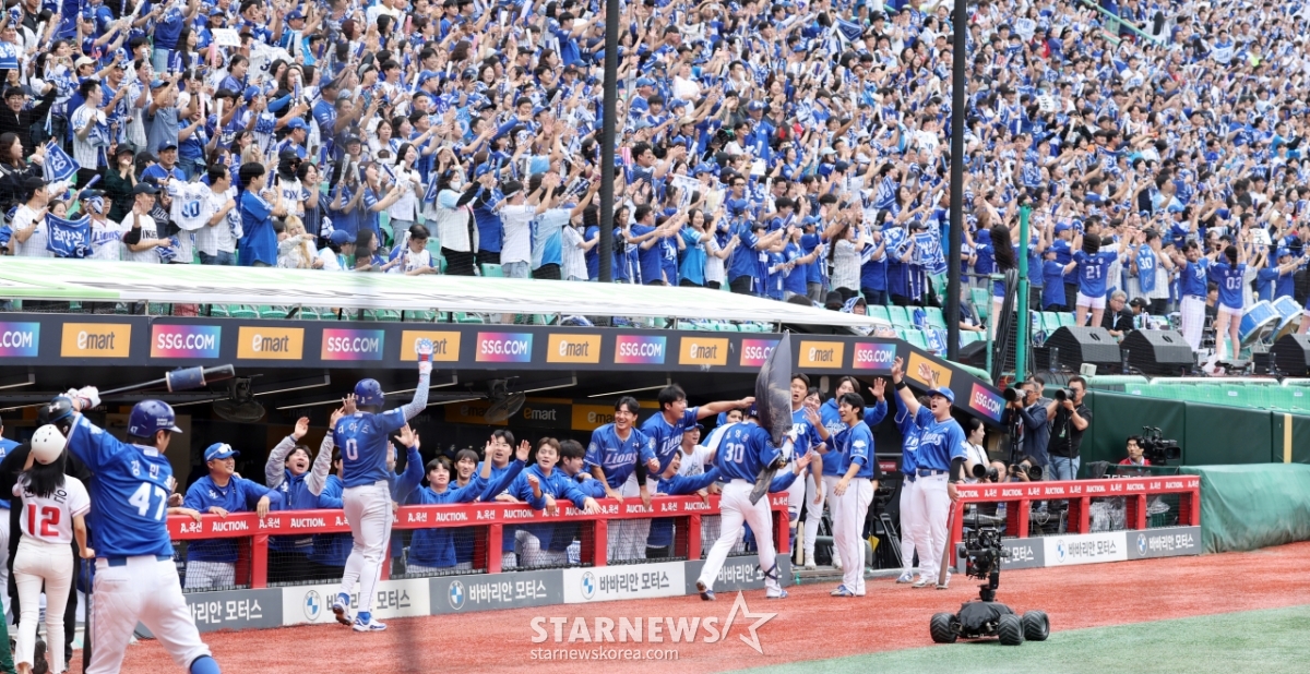 스포츠야구[한번에쓱]'선발투수 화이트 강판시키는' 김영웅의 투런홈런발행 : 2025.10.09 ・ 15:04인천=강영조 선임기자삼성 5번타자 김영웅이 9일 인천SSG랜더스필드에서 열린 2025 KBO리그 준플레이오프 1차전 SSG랜더스와 삼성라이온즈 경기 3회초 무사 1루에서 우월 2점홈런을 터트린 후 홈인하고 있다. 3-0으로 앞서가는 삼성. 2025.10.09한 대 맞자!격한 축하보내는 강민호!라이온즈 응원석은 푸른 함성이 출렁<저작권자 © 스타뉴스, 무단전재 및 재배포 금지>브리핑요약 없이도 가볍게 읽으실 수 있는 짧은 뉴스입니다.추천 기사강영조 선임기자기자홈좋아요스포츠-야구의 인기 급상승 뉴스스포츠-야구의 최신 뉴스