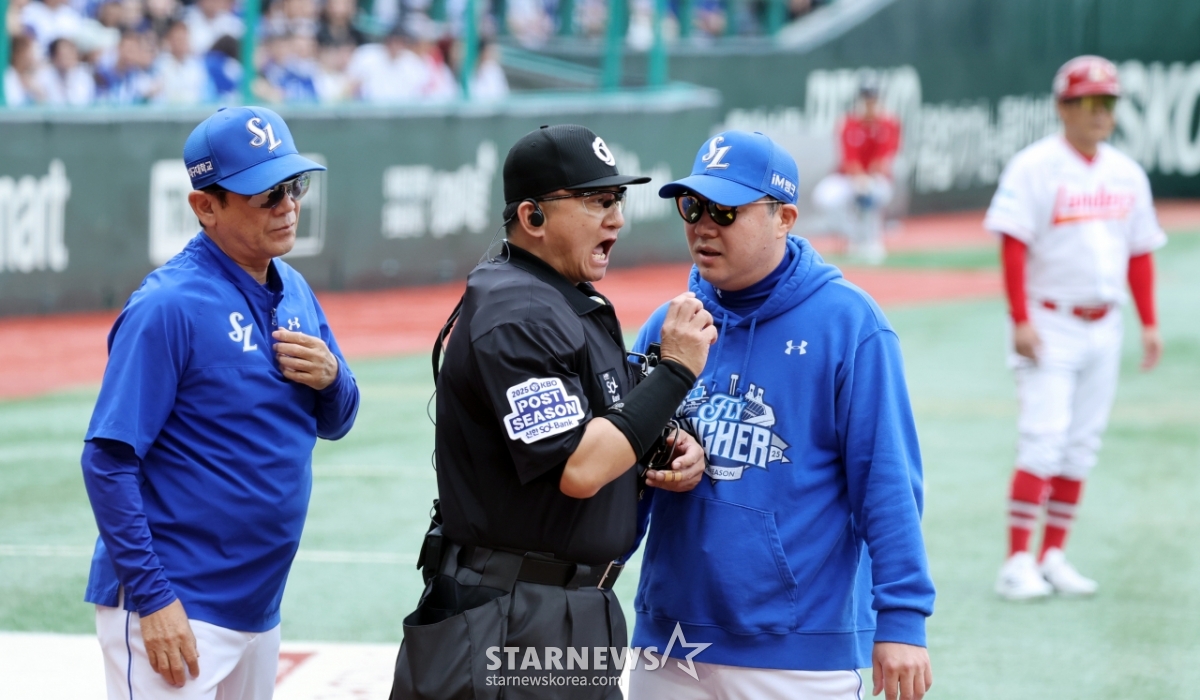 스포츠야구[한번에쓱]'2회말 수비방해 어필하는' 박진만 감독발행 : 2025.10.09 ・ 15:13인천=강영조 선임기자광고삭제미소 띠며 그라운드 나서는 박진만 감독삼성 박진만 감독이 인천SSG랜더스필드에서 열린 2025 KBO리그 준플레이오프 1차전 SSG랜더스와 삼성라이온즈 경기 2회말 고명준의 수비방해를 어필한 후 박종철 구심의 설명을 듣고 더그아웃으로 향하고 있다. 2025.10.09'포수 수비 방해하는 것 같던데...''자연스런 타자들의 후속동작로 판단됩니다!'<저작권자 © 스타뉴스, 무단전재 및 재배포 금지>박진만삼성랜더스수비방해감독추천 기사강영조 선임기자기자홈좋아요 스포츠-야구의 인기 급상승 뉴스스포츠-야구의 최신 뉴스