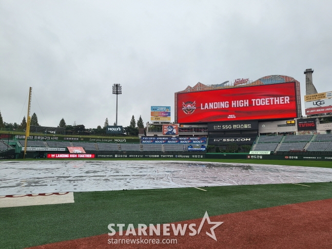 문제는 날씨다. 밤사이부터 계속 내리기 시작한 비는 멈추지 않았다. 1차전을 마친 뒤부터 내야에 대형 방수포를 깔아뒀지만 외야와 워닝 트랙 등 비에 젖은 공간들이 많아 정상 개시가 불투명한 상태다.