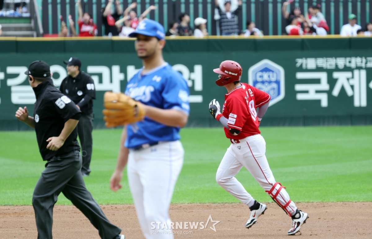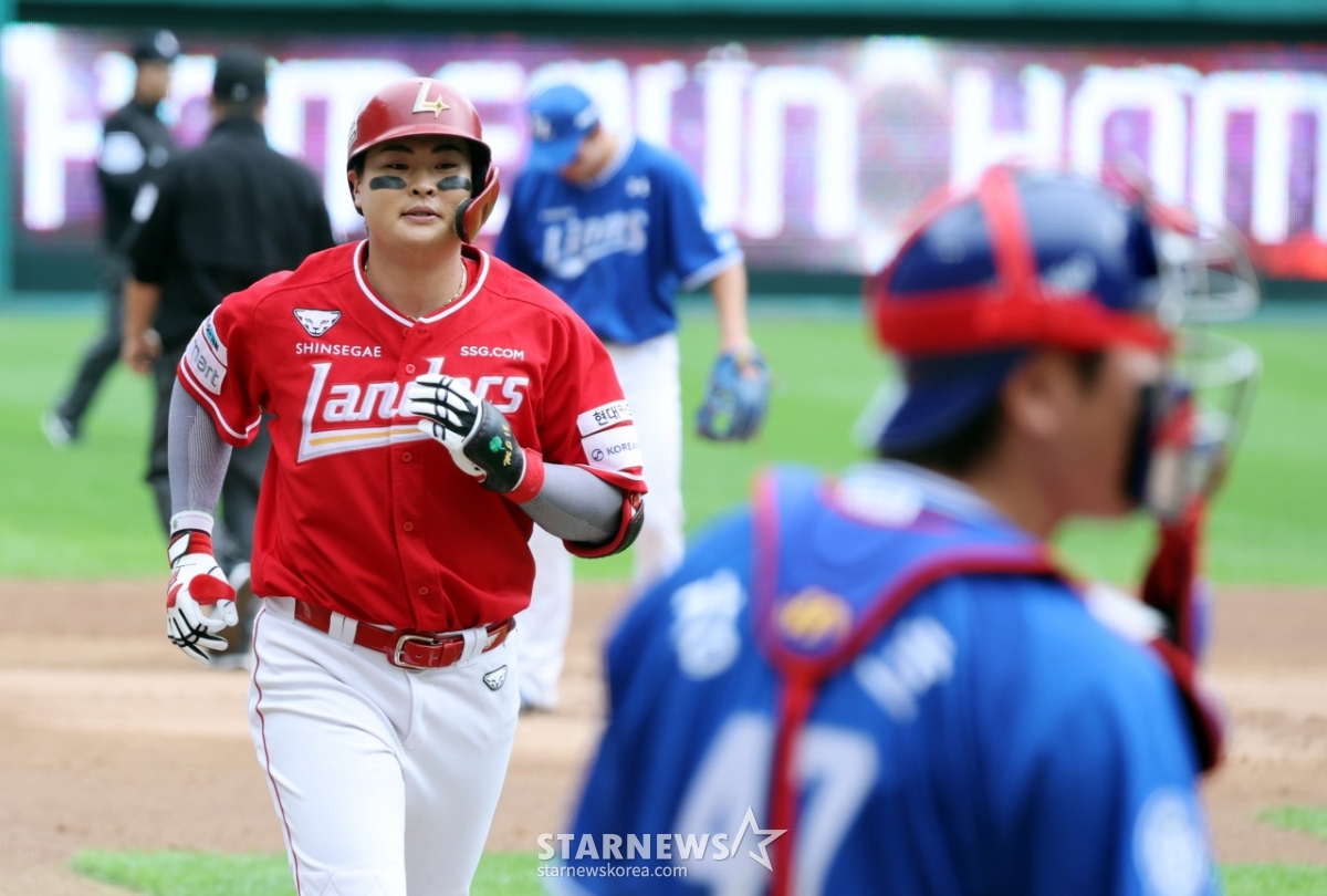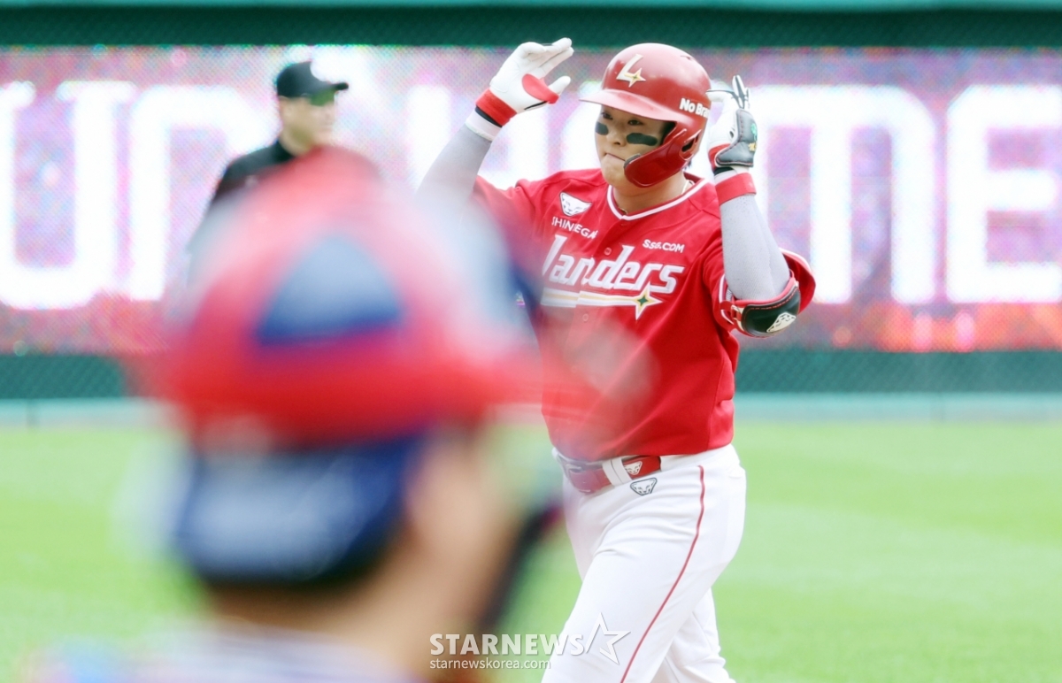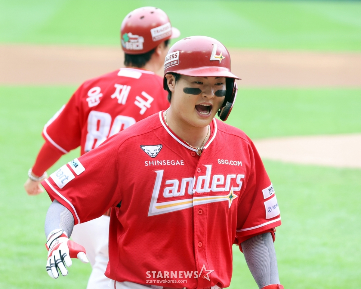 스포츠야구[한번에쓱]'2경기 2홈런 기록' 가라비토 상대로 선제솔로홈런 고명준발행 : 2025.10.11 ・ 14:46인천=강영조 선임기자광고삭제SSG 5번타자 고명준이 11일 인천SSG랜더스필드에서 열리는 2025 KBO리그 준플레이오프 2차전 SSG랜더스와 삼성라이온즈 경기 2회말 1사에서 가라비토를 상대로 선제 솔로홈런을 터트린 후 홈인하고 있다. 2025.10.11.<저작권자 © 스타뉴스, 무단전재 및 재배포 금지>고명준랜더스홈런경기비토상대추천 기사강영조 선임기자기자홈좋아요 스포츠-야구의 인기 급상승 뉴스스포츠-야구의 최신 뉴스