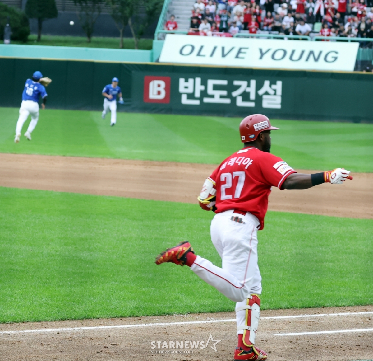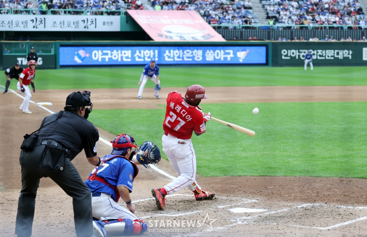 스포츠야구[한번에쓱]'5회말 다시 리드잡는 SSG' 적시타 에레디아발행 : 2025.10.11 ・ 15:44인천=강영조 선임기자광고삭제SSG 2번타자 에레디아가 11일 인천SSG랜더스필드에서 열리는 2025 KBO리그 준플레이오프 2차전 SSG랜더스와 삼성라이온즈 경기 5회말 2사 3루에서 1타점 안타로 출루하고 있다. 2025.10.11.기습번트로 안타를 만들어낸 3루주자 정준재를 불러들이는 안타먹혔지만 적당한 위치에 떨어지는 타구.<저작권자 © 스타뉴스, 무단전재 및 재배포 금지>에레디아SSG랜더스인천삼성라이온즈추천 기사강영조 선임기자기자홈좋아요 스포츠-야구의 인기 급상승 뉴스스포츠-야구의 최신 뉴스
