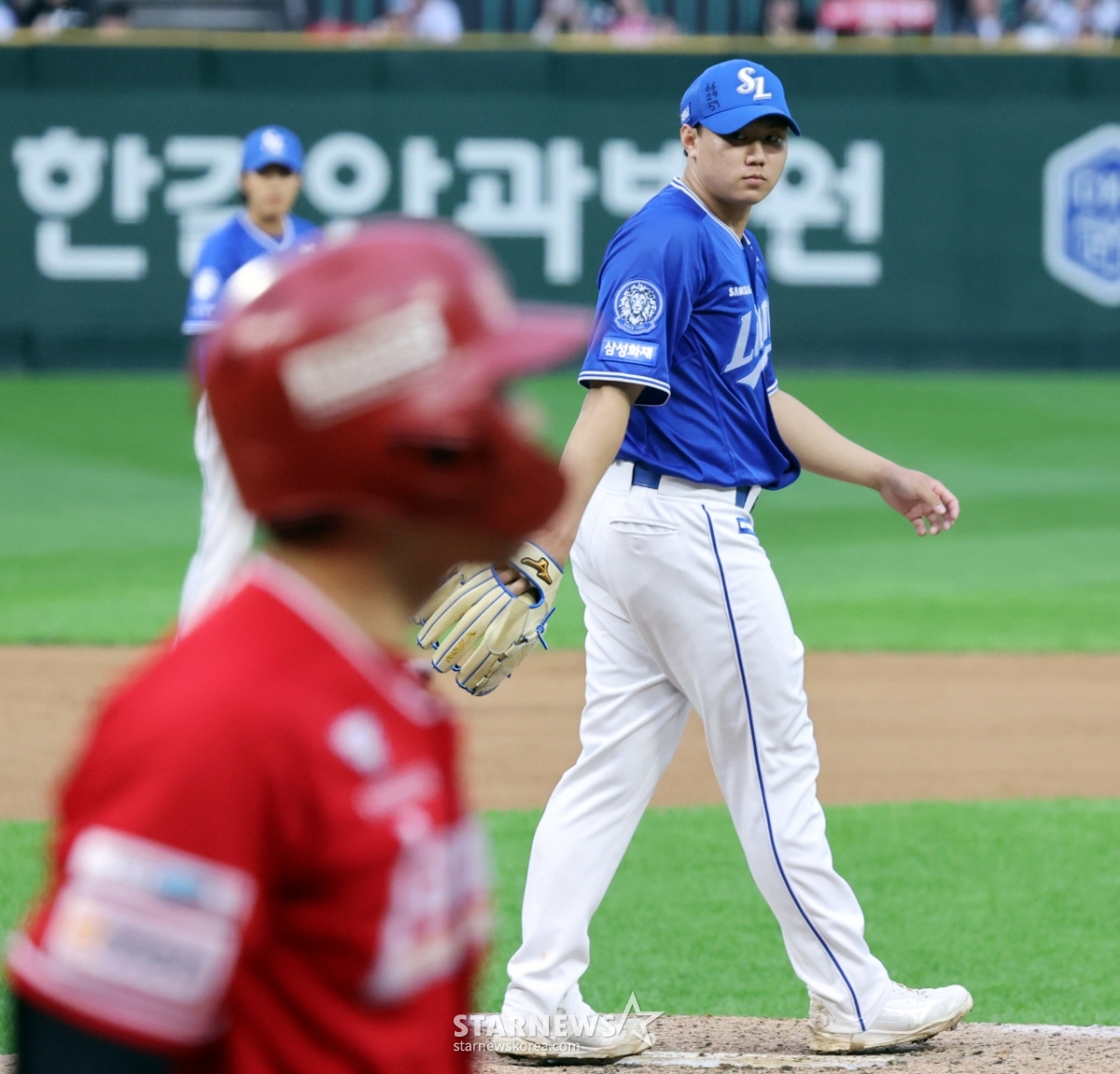 스포츠야구[한번에쓱]'8회말 시크하게 두타자 삼진처리' 삼성 배찬승발행 : 2025.10.11 ・ 16:44인천=강영조 선임기자광고삭제삼성 불펜 배찬승이 11일 인천SSG랜더스필드에서 열리는 2025 KBO리그 준플레이오프 2차전 SSG랜더스와 삼성라이온즈 경기 8회말 등판해 한유섬과 고명준을 삼진처리하며 무실점 피칭을 펼치고 있다. 2025.10.11.<저작권자 © 스타뉴스, 무단전재 및 재배포 금지>삼성배찬랜더스삼진처리인천추천 기사강영조 선임기자기자홈좋아요 스포츠-야구의 인기 급상승 뉴스스포츠-야구의 최신 뉴스