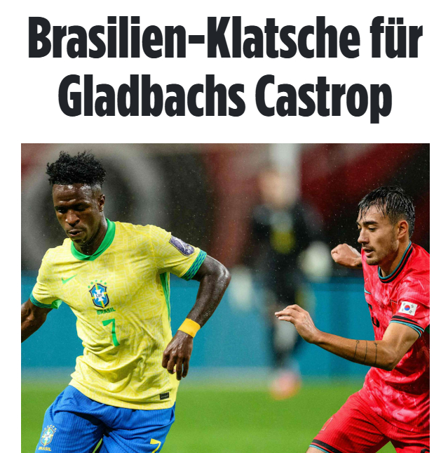 사실상 독일 국가대표팀을 선택하지 않은 카스트로프에 대해 불편한 심기를 노골적으로 드러내는 듯했다. '빌트'는 "카스트로프는 9월 어머니의 조국인 독일 대표팀이 아닌 아시아 대표팀인 한국을 선택해 세 번째 A매치에 나섰다"며 "하지만 데뷔전부터 악몽이었다. 그가 투입된 이후 에스테방(첼시)과 호드리구의 연속골로 스코어는 순식간에 4-0으로 벌어졌다"고 전했다.