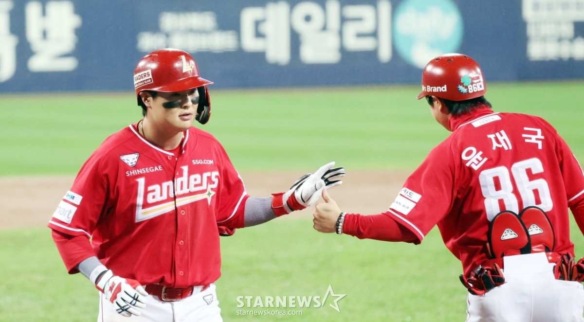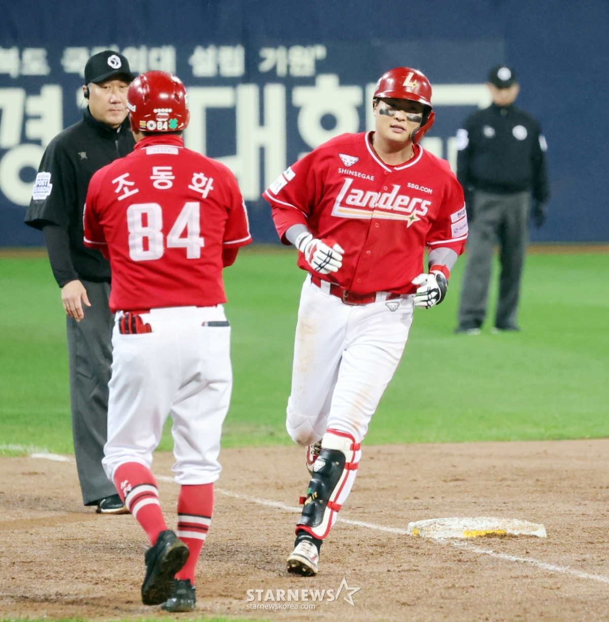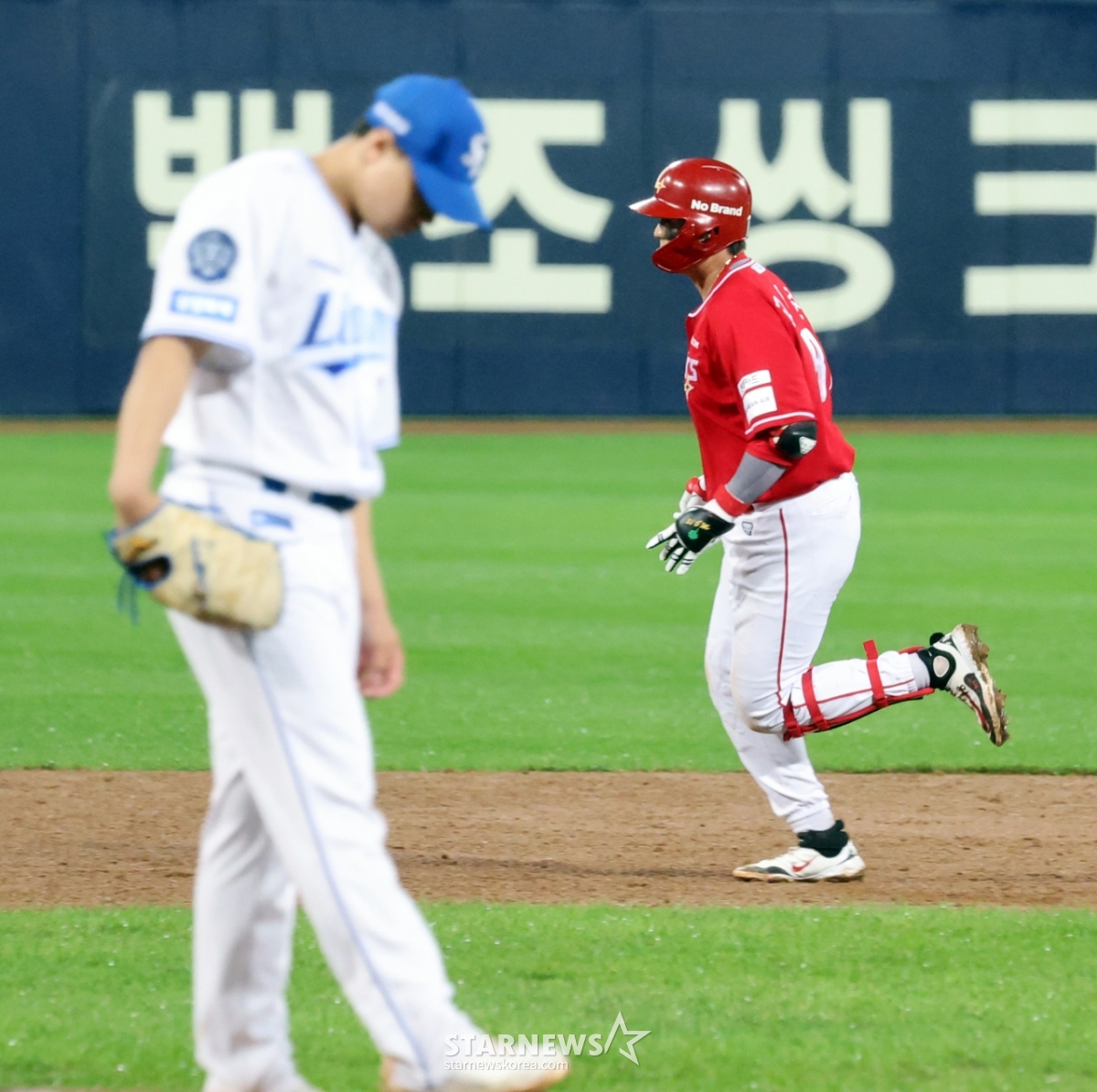 스포츠야구[한번에쓱] '포스트시즌 세경기 연속홈런' 고명준발행 : 2025.10.13 ・ 22:31대구=강영조 선임기자광고삭제SSG 4번타자 고명준이 13일 대구삼성라이온즈파크에서 열리는 2025 KBO리그 준플레이오프 3차전 SSG랜더스와 삼성라이온즈 경기 9회초 무사 1루에서 좌월2점홈런을 터트린 후 홈인하고 있다. 2025.10.13.포스트시즌 물오른 배찬승을 상대로 추격의 2점홈런을 터트린 고명준.<저작권자 © 스타뉴스, 무단전재 및 재배포 금지>고명준삼성라이온즈홈런포스트시즌추천 기사강영조 선임기자기자홈좋아요 스포츠-야구의 인기 급상승 뉴스스포츠-야구의 최신 뉴스