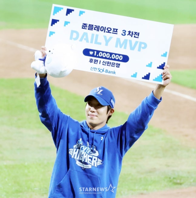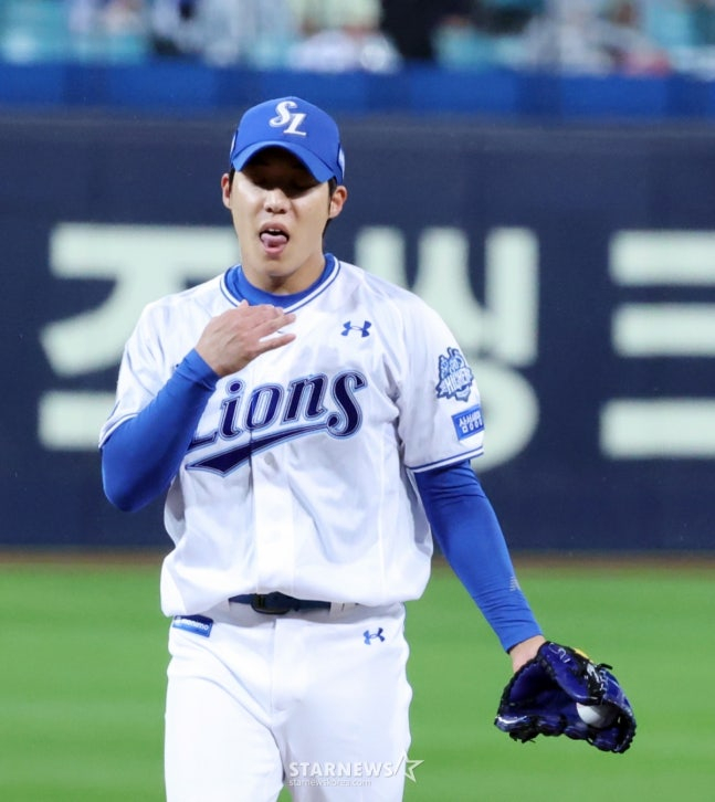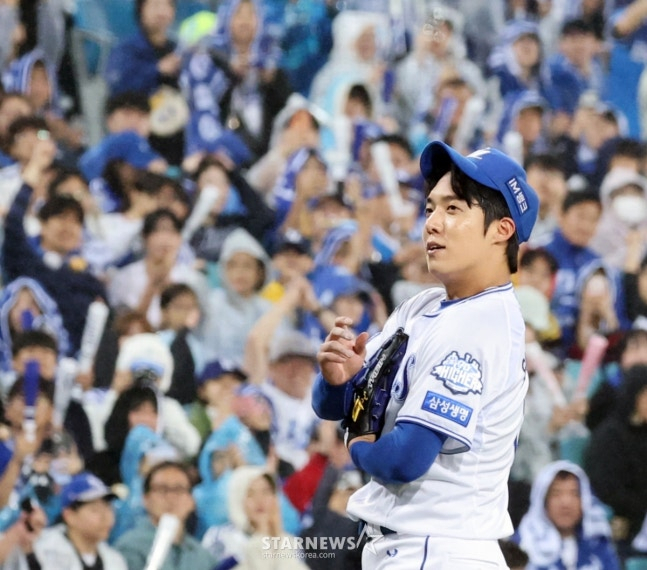앞서 원태인은 지난 7일 홈에서 열린 NC 다이노스와 와일드카드 결정전 2차전에서도 선발로 등판해 6이닝 동안 106구를 던지며 4피안타 2사사구 5탈삼진 무실점을 기록, 승리투수가 됐다. 특히 이날 역시 비로 인해 경기 시작이 45분 미뤄졌음에도 상대를 압도했다.
