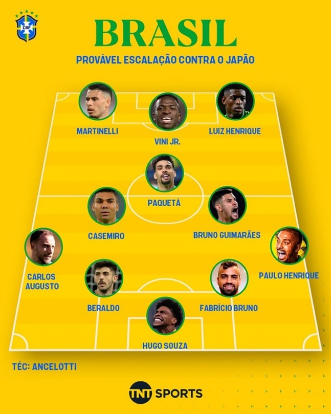 브라질 매체 역시 마찬가지였다. 안첼로티 감독의 발언뿐 아니라 브라질 대표팀의 훈련을 참관한 뒤 예상 선발 라인업까지 내놨다. 브라질 TNT 스포츠는 일본전 선발 라인업의 대거 변화를 점쳤다. TNT 스포츠에 따르면 한국전에서 나란히 2골씩을 넣은 호드리구(레알 마드리드)와 에스테반(첼시) 대신 루이즈 엔리케(제니트)와 가브리엘 마르티넬리(아스널)가 선발로 나설 예정이다. 선발 골키퍼도 벤투(알 나스르) 대신 신예 골키퍼 후고 소사(코린치앙스)의 A매치 데뷔를 점쳤다. 소사는 브라질 연령별 대표팀 소집조차 없는 대표팀 신예다.