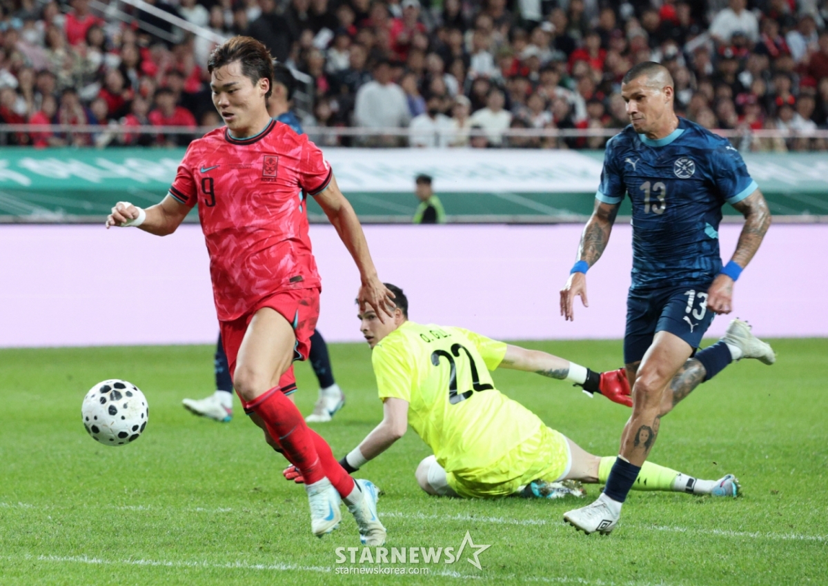홍명보 감독이 이끄는 한국은 14일 오후 8시 서울월드컵경기장에서 열린 축구 국가대표팀 평가전에서 엄지성(스완지 시티)과 오현규(헹크)의 연속골을 앞세워 파라과이에 2-0으로 승리했다. 국제축구연맹(FIFA) 랭킹은 한국이 23위, 파라과이는 37위다.