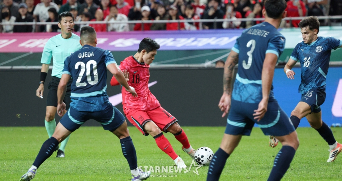 스포츠축구[포토] 이동경의 대포알 슈팅 결과는?발행 : 2025.10.14 ・ 21:07상암=김진경 대기자광고삭제한국 축구 국가대표팀이 14일 서울월드컵경기장에서 파라과이 대표팀과 친선경기를 벌였다.이동경이 파라과이 오제다를 제치고 슈팅을 날리고 있다.<저작권자 © 스타뉴스, 무단전재 및 재배포 금지>국대홍명보홍명보호손흥민이강인김민재추천 기사김진경 대기자기자홈좋아요 스포츠-축구의 인기 급상승 뉴스스포츠-축구의 최신 뉴스