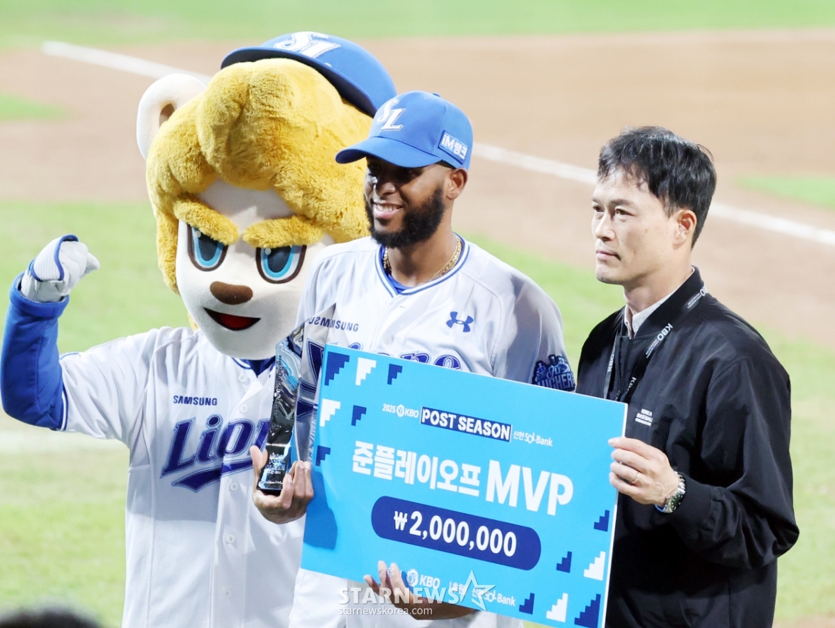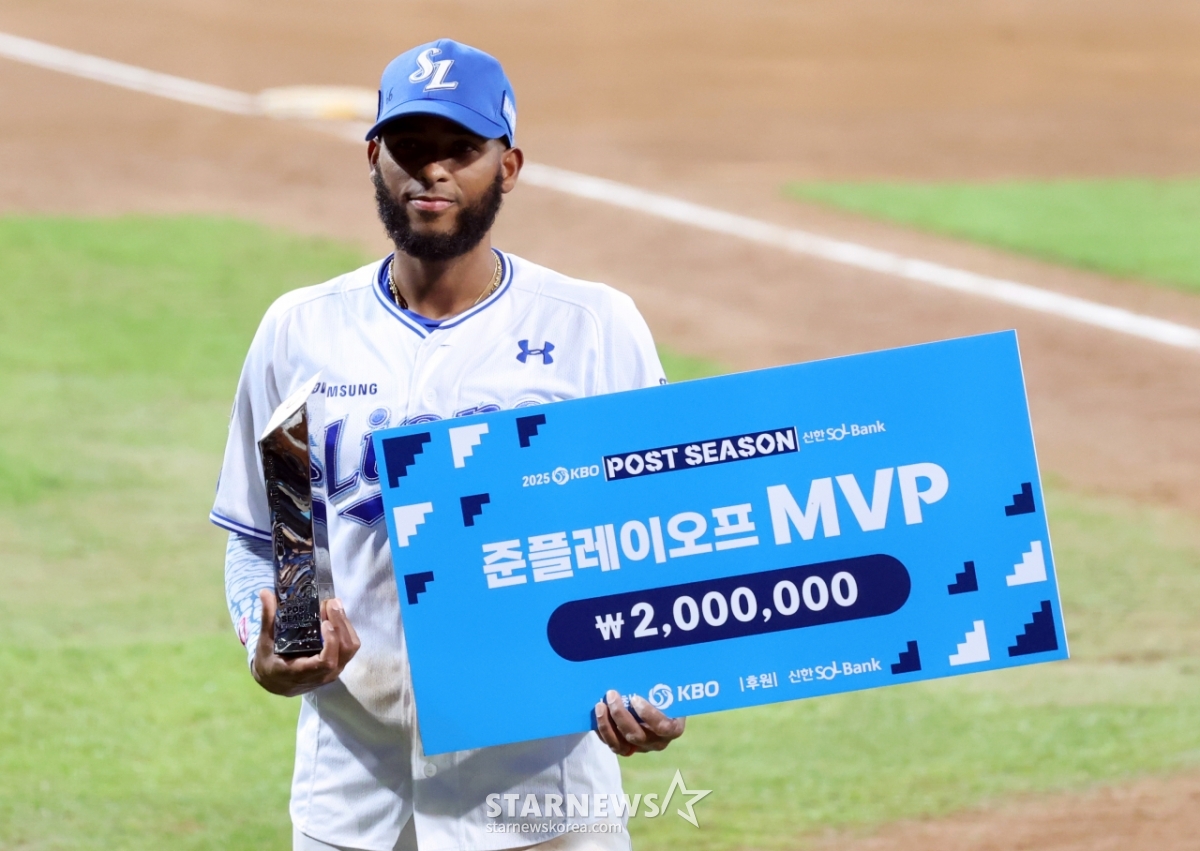 스포츠야구[포토] '진짜 포텐터진 디아즈' 포텐터짐상에 준PO MVP까지발행 : 2025.10.14 ・ 22:02대구=강영조 선임기자광고삭제8회말 2-2 균형깬 2점홈런 주인공 디아즈가 14일 대구삼성라이온즈파크에서 열리는 2025 KBO리그 준플레이오프 4차전 SSG랜더스와 삼성라이온즈 경기에서 승리한 후 포텐터짐상과 준플레이오프MVP를 수상하고 있다. 2025.10.14.<저작권자 © 스타뉴스, 무단전재 및 재배포 금지>디아즈POMVP삼성라이온즈터짐추천 기사강영조 선임기자기자홈좋아요 스포츠-야구의 인기 급상승 뉴스스포츠-야구의 최신 뉴스