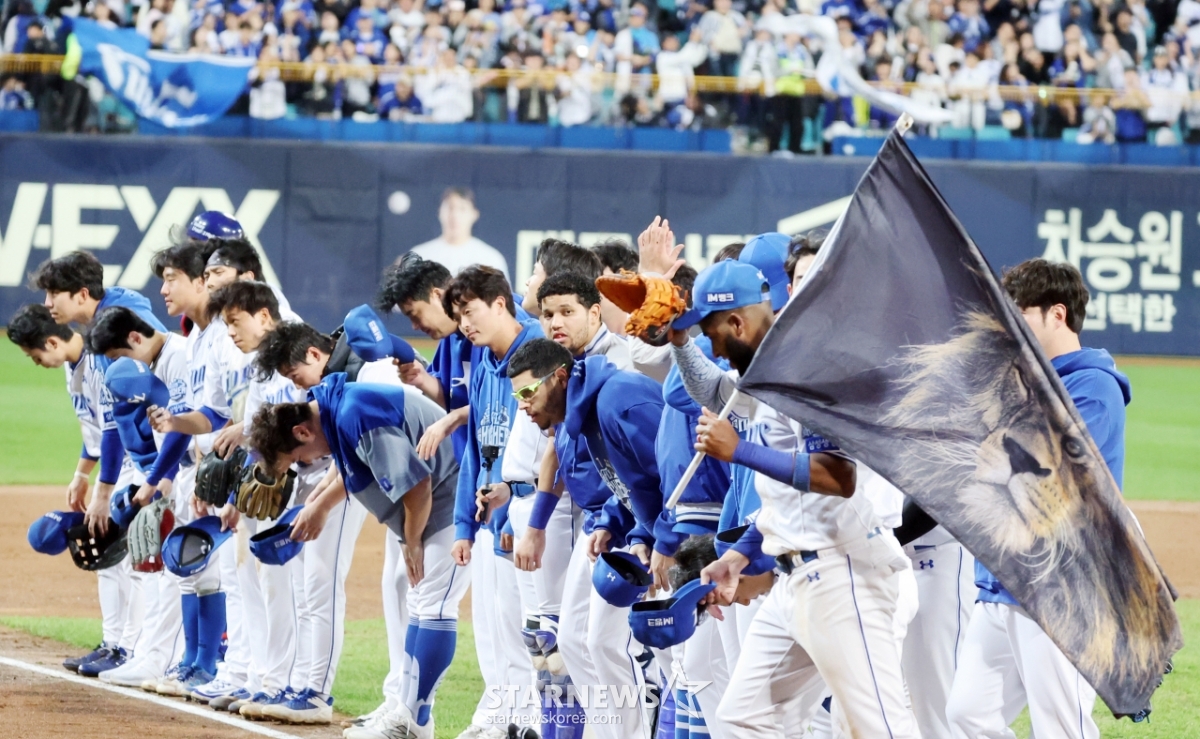 스포츠야구[포토] '깃발들고 독수리 잡으로 대전으로' 디아즈발행 : 2025.10.14 ・ 22:14대구=강영조 선임기자광고삭제삼성 4번타자 디아즈가 14일 대구삼성라이온즈파크에서 열리는 2025 KBO리그 준플레이오프 4차전 SSG랜더스와 삼성라이온즈 경기에서 8회말 2-2동점을 무너트리는 투런홈런으로 삼성에 승리를 선물한 후 깃발을 들고 그라운드를 나서고 있다. 2025.10.14.<저작권자 © 스타뉴스, 무단전재 및 재배포 금지>디아즈삼성라이온즈깃발대구랜더스추천 기사강영조 선임기자기자홈좋아요 스포츠-야구의 인기 급상승 뉴스스포츠-야구의 최신 뉴스
