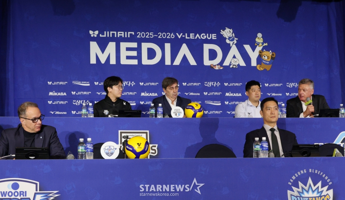스포츠일반[포토] V리그 미디어데이 '뜨거운 승부욕'발행 : 2025.10.15 ・ 15:34청담동=김진경 대기자진에어 2025-2026시즌 V리그 미디어데이가 15일 서울 강남구 청담 리베라호텔에서 열렸다.대한항공 헤난 달 조토 감독이 기자의 질문에 답하고 있다.<저작권자 © 스타뉴스, 무단전재 및 재배포 금지>남자배구미데미디어데이V리그진에어신호진추천 기사김진경 대기자기자홈좋아요 스포츠-일반의 인기 급상승 뉴스스포츠-일반의 최신 뉴스