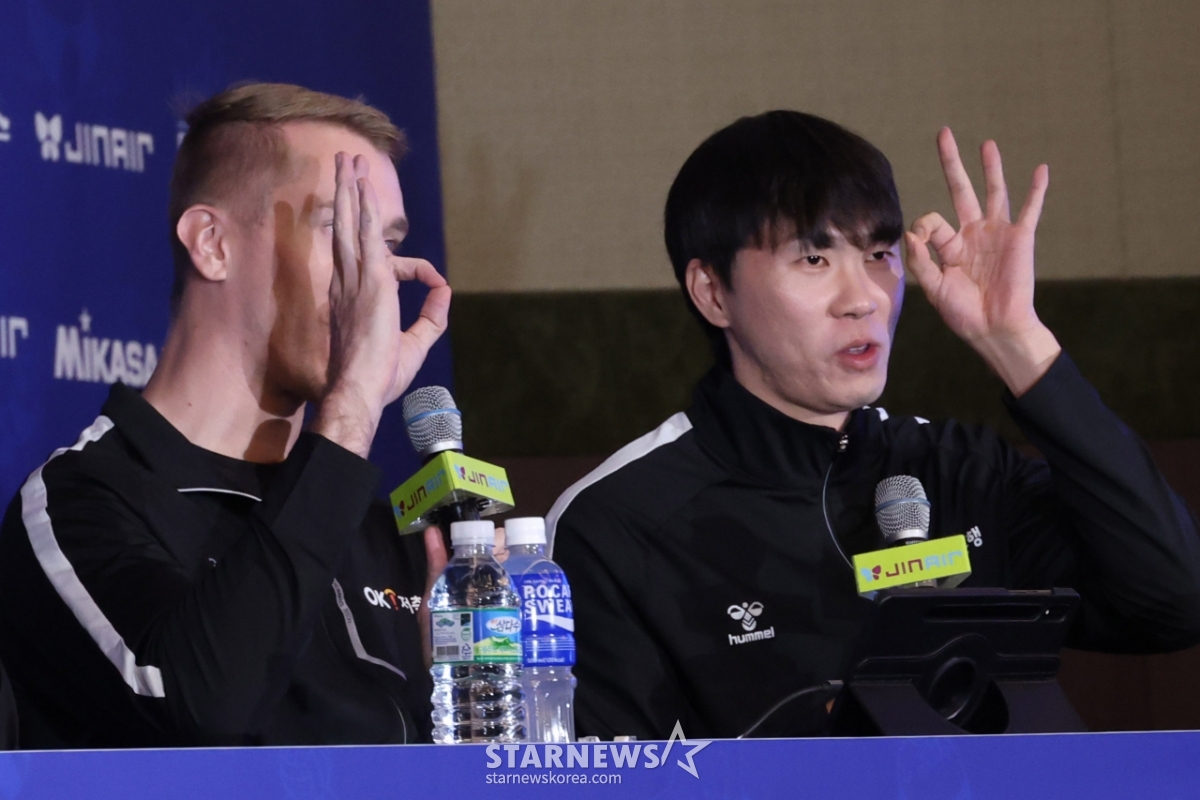 스포츠일반[포토] 전광인-트렌트 '우승? OK'발행 : 2025.10.15 ・ 16:00청담동=김진경 대기자진에어 2025-2026시즌 V리그 미디어데이가 15일 서울 강남구 청담 리베라호텔에서 열렸다.OK저축은행 전광인과 트렌트 오데이가 구단 구호를 발표하고 있다.<저작권자 © 스타뉴스, 무단전재 및 재배포 금지>남자배구미데미디어데이V리그진에어신호진추천 기사김진경 대기자기자홈좋아요 스포츠-일반의 인기 급상승 뉴스스포츠-일반의 최신 뉴스
