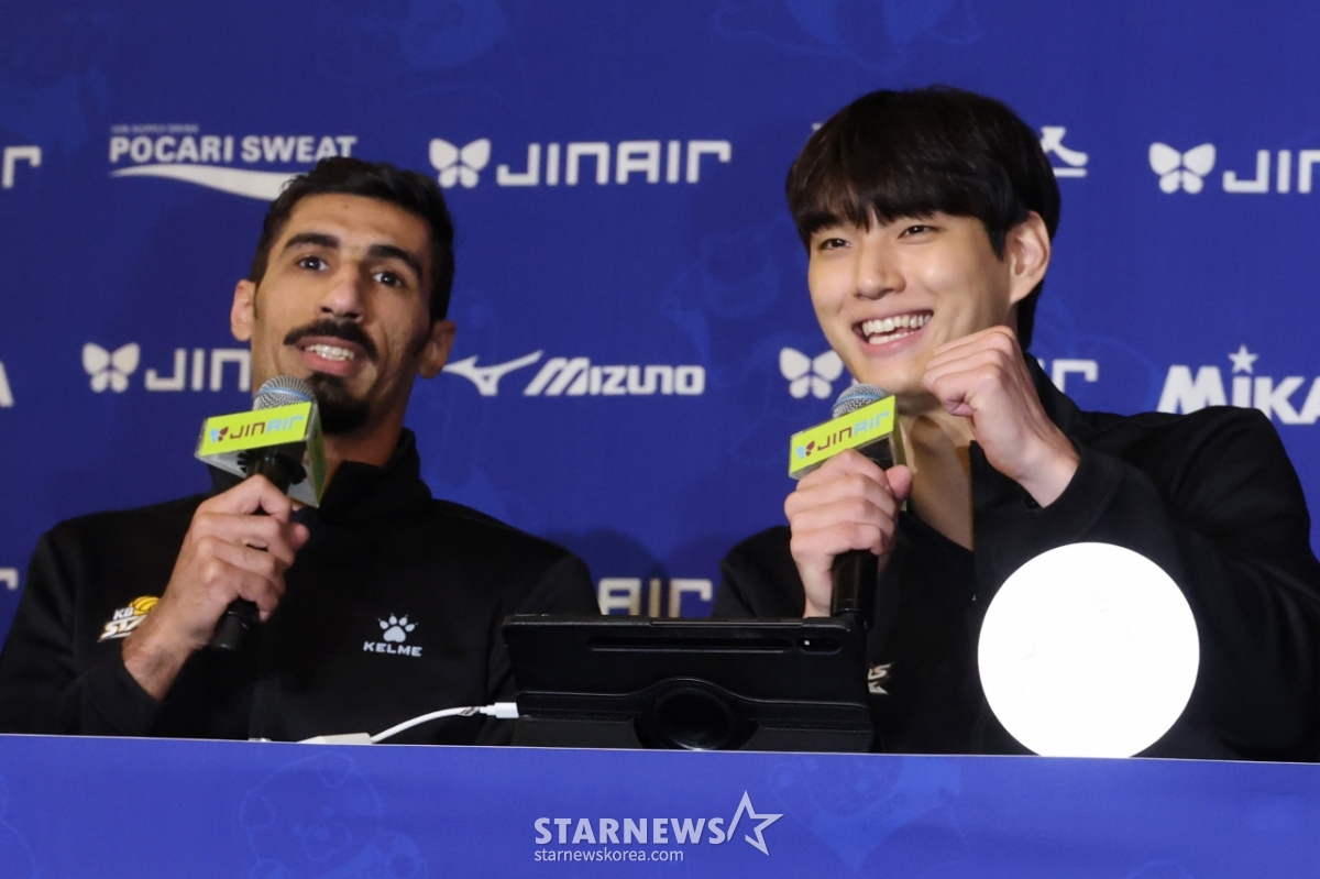 스포츠일반[포토] 임성진-야쿱 'KB 손보가 질주한다'발행 : 2025.10.15 ・ 16:14청담동=김진경 대기자진에어 2025-2026시즌 V리그 미디어데이가 15일 서울 강남구 청담 리베라호텔에서 열렸다.KB손해보험 임성진과 모하메드 야쿱이 구단 구호를 발표하고 있다.<저작권자 © 스타뉴스, 무단전재 및 재배포 금지>남자배구미데미디어데이V리그진에어신호진추천 기사김진경 대기자기자홈좋아요 스포츠-일반의 인기 급상승 뉴스스포츠-일반의 최신 뉴스